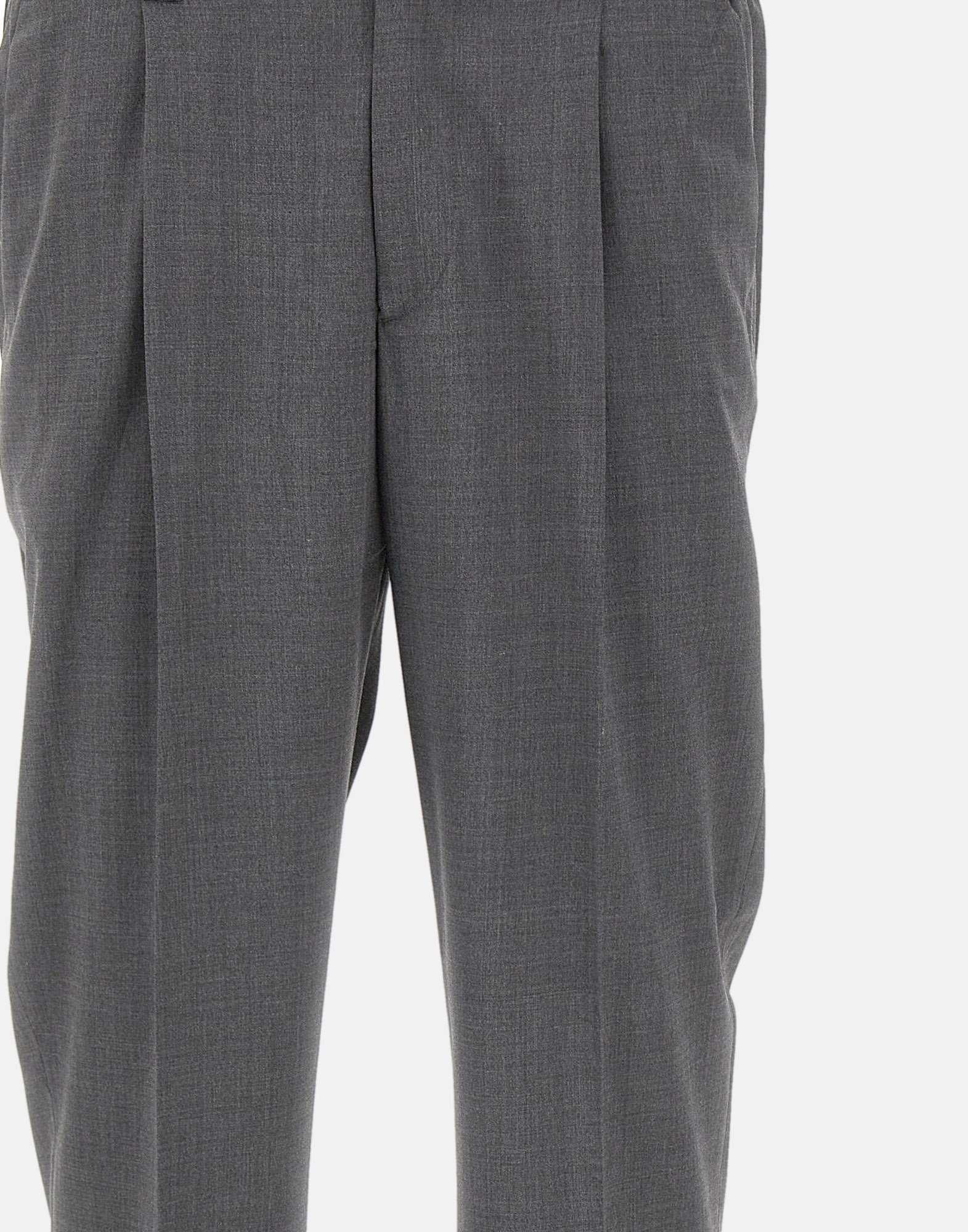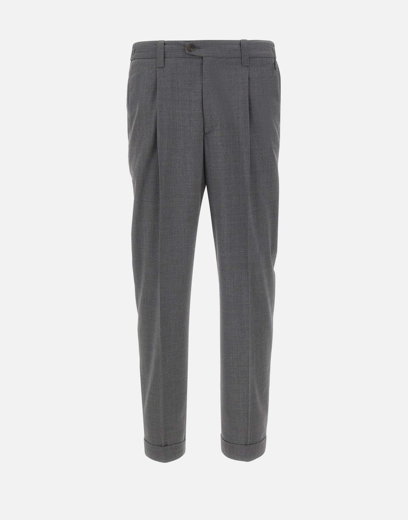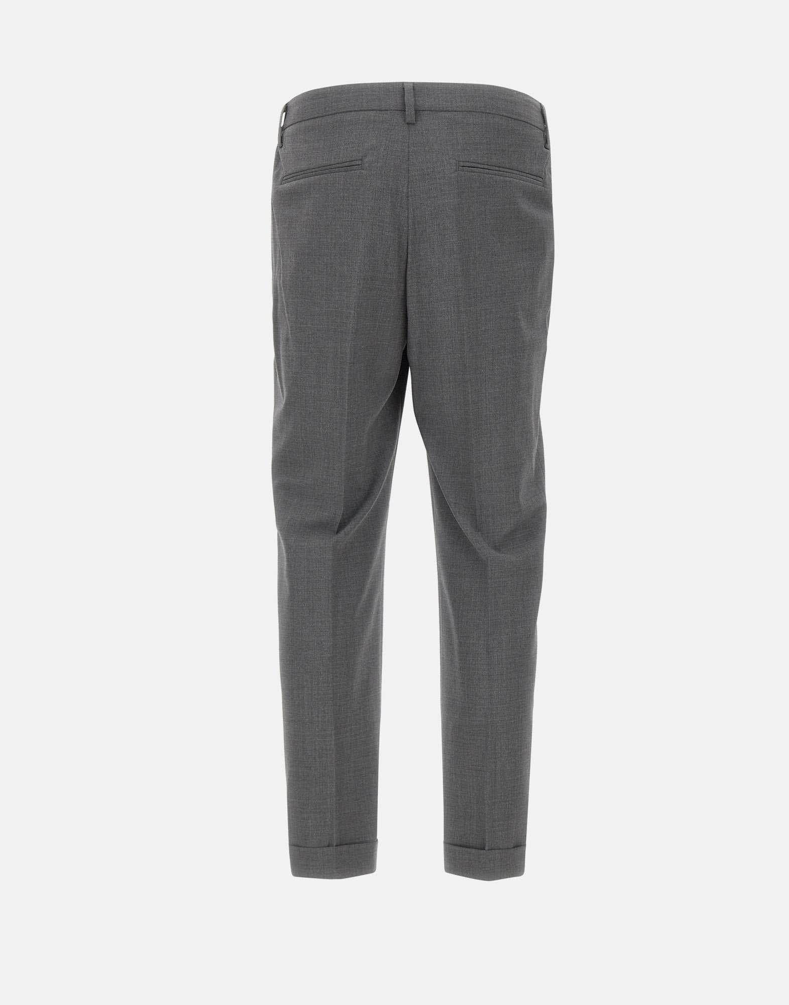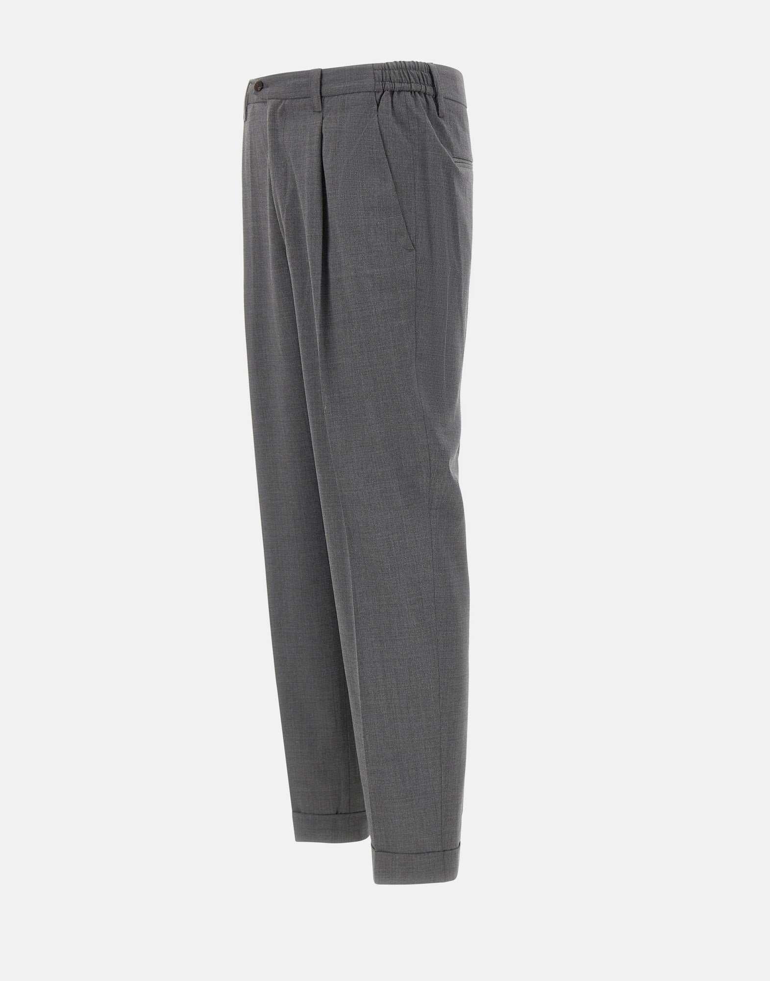 Pantaloni uomo Devore realizzati in misto lana color grigio, caratterizzati da un design sartoriale contemporaneo e da una costruzione Made in Italy. Presentano vita elasticizzata sui fianchi con passanti per cintura, pinces frontali che valorizzano la linea e chiusura con zip coperta da patta e bottoni. Le tasche anteriori all’italiana e le tasche posteriori a filetto completano il modello con dettagli funzionali ed eleganti. La gamba dritta con risvolto di 4 cm e ampiezza fondo di 17,5 cm definisce una vestibilità regular fit equilibrata, ideale per look formali e outfit smart casual.