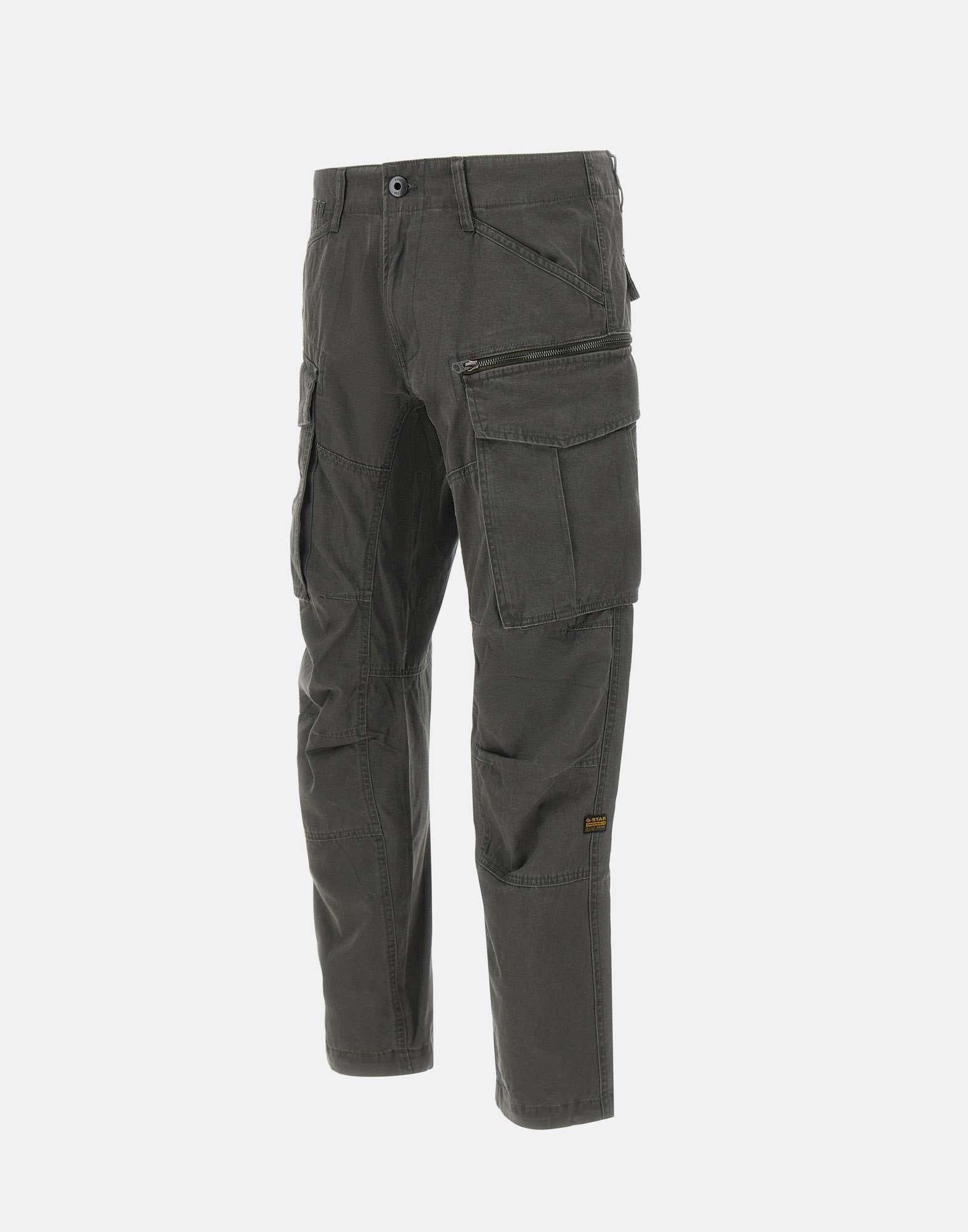 Pantaloni uomo G-Star Raw “Rovic Zip 3D” realizzato in cotone color grigio scuro, modello cargo con molteplici tasche pensato per un look contemporaneo e funzionale. Presentano vita bassa con passanti per cintura e chiusura con zip e bottone, mentre il fondo da 18 cm è regolabile con coulisse interna per una vestibilità aderente alle caviglie. Il taglio regular affusolato unisce comfort e linea definita, completato da cuciture rinforzate per una maggiore durata. Pinces e cuciture posizionate strategicamente valorizzano la costruzione 3D del capo.