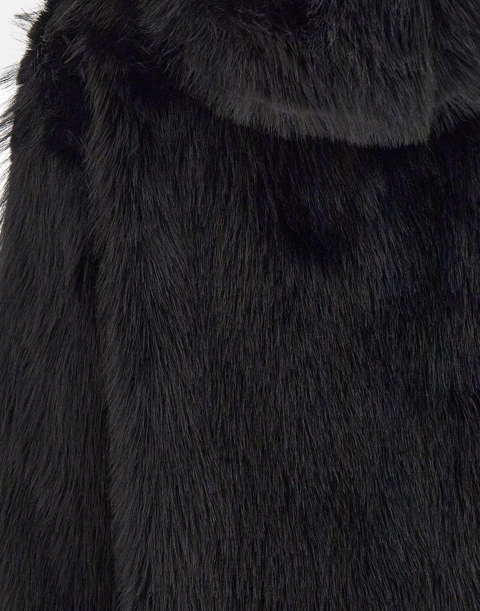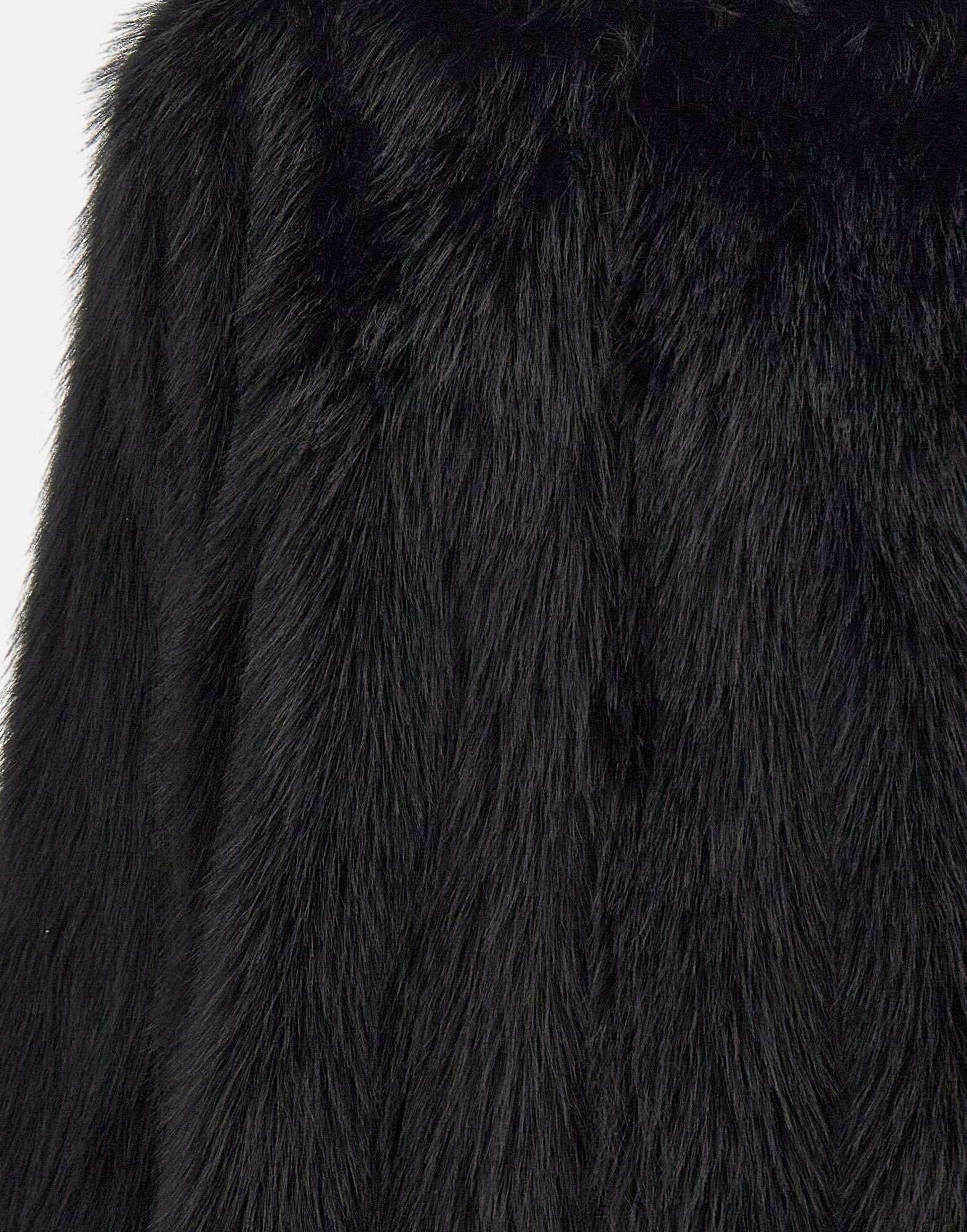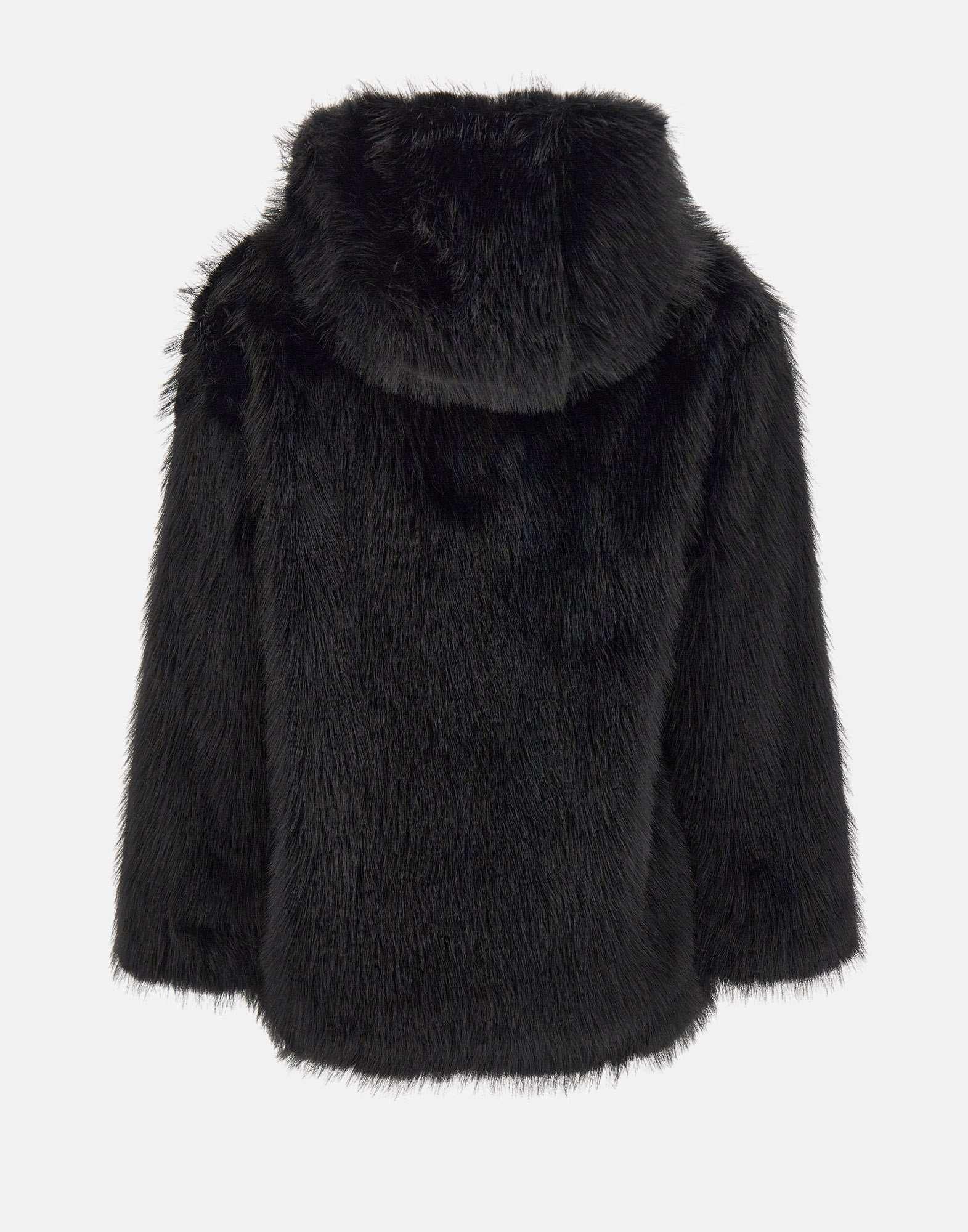 Pelliccia ecologica Kaos in colore nero, caratterizzata da pelo lungo per un effetto avvolgente e sofisticato. Modello con cappuccio, tasche laterali a filo e fodera tono su tono. Vestibilità relaxed fit, ideale per completare look casual o eleganti con un tocco glamour e cruelty-free.