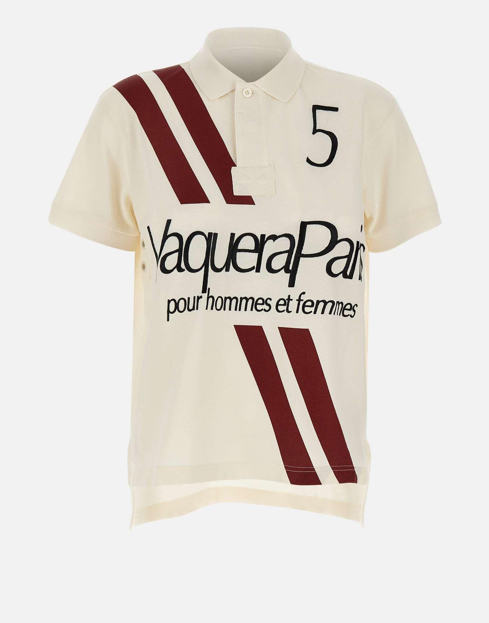 Polo donna Vaquera realizzata in cotone color avorio, caratterizzata da stampa e ricamo logo a contrasto che valorizzano l’estetica contemporanea del brand. Questa polo donna in cotone unisce design distintivo e dettagli ricercati, come le maniche corte con orli a costine e il classico colletto polo con bottone nascosto da patta, per una linea pulita ed essenziale. Il modello è arricchito da occhielli sui fianchi e spacchi laterali con orlo anteriore leggermente più corto, elementi che donano movimento e personalità al capo. La vestibilità rilassata assicura comfort e versatilità, rendendo questa polo donna avorio perfetta per look casual di stagione o abbinamenti più ricercati in chiave luxury fashion.
