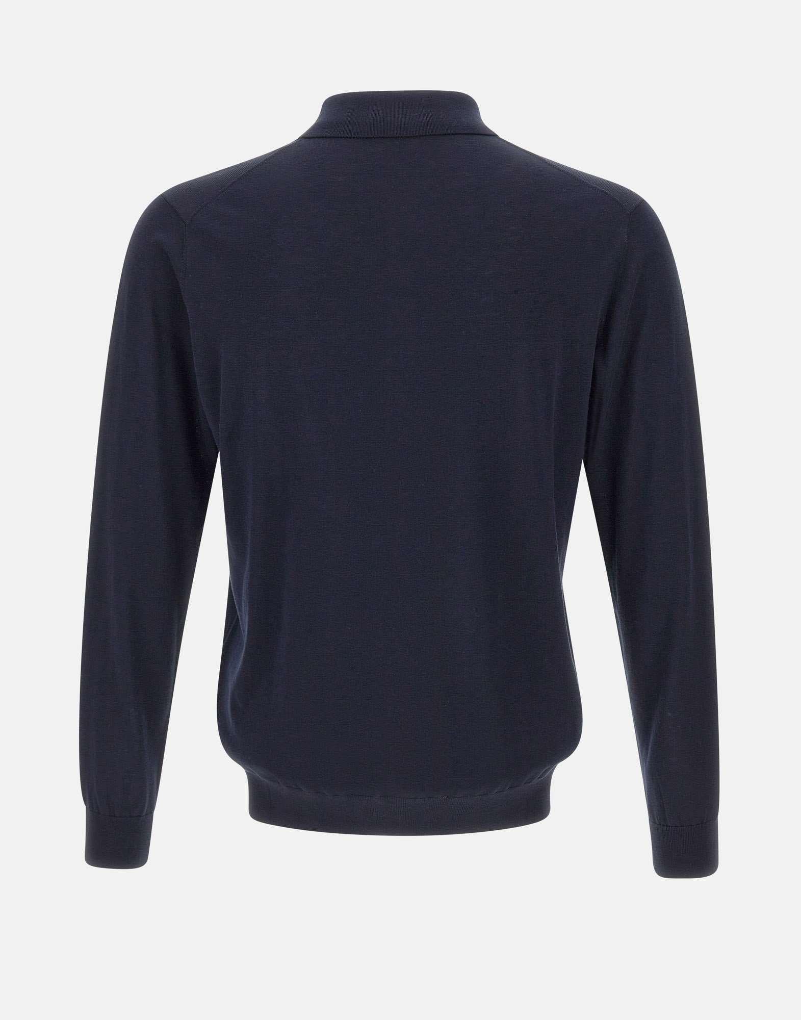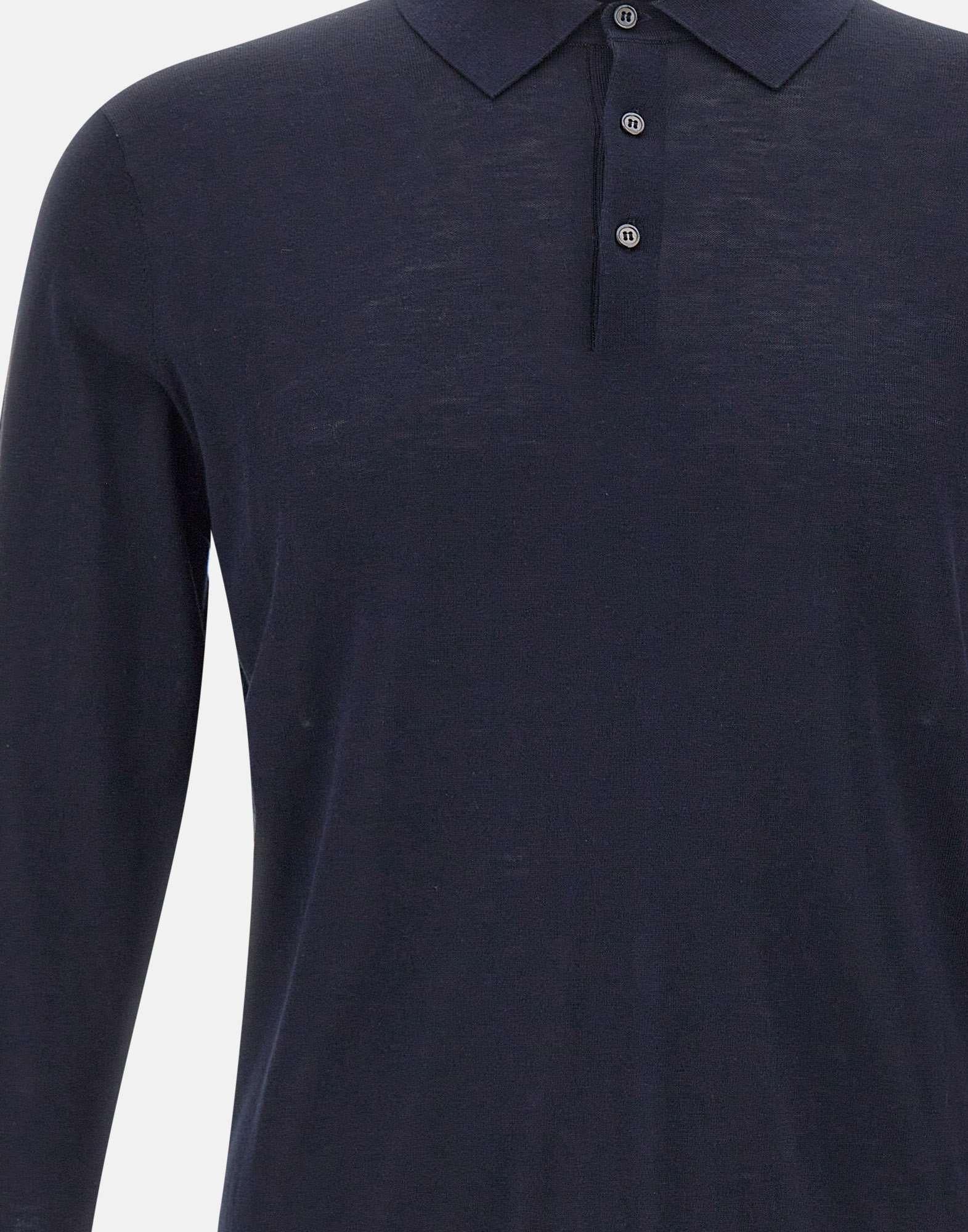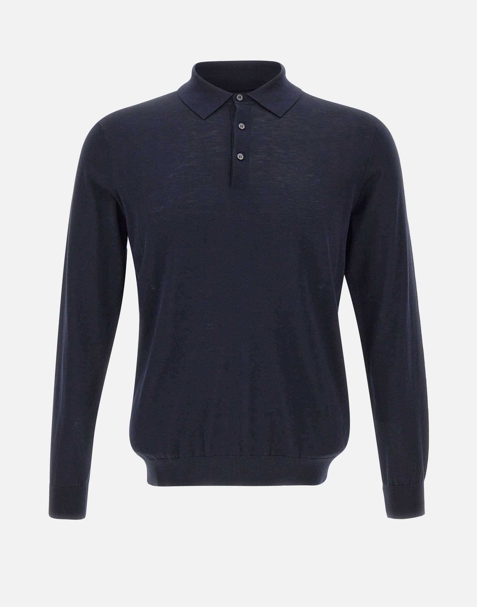 Polo uomo Kangra realizzata in misto seta e cotone color blu scuro, pensata per un’eleganza essenziale e contemporanea. Il modello presenta maniche lunghe e colletto a costine con chiusura a tre bottoni in tono, rifinito da polsini e fondo a costine che definiscono la linea con un dettaglio pulito. Una polo ideale per look casual raffinati e abbinamenti smart casual..Vestibilità regolare.