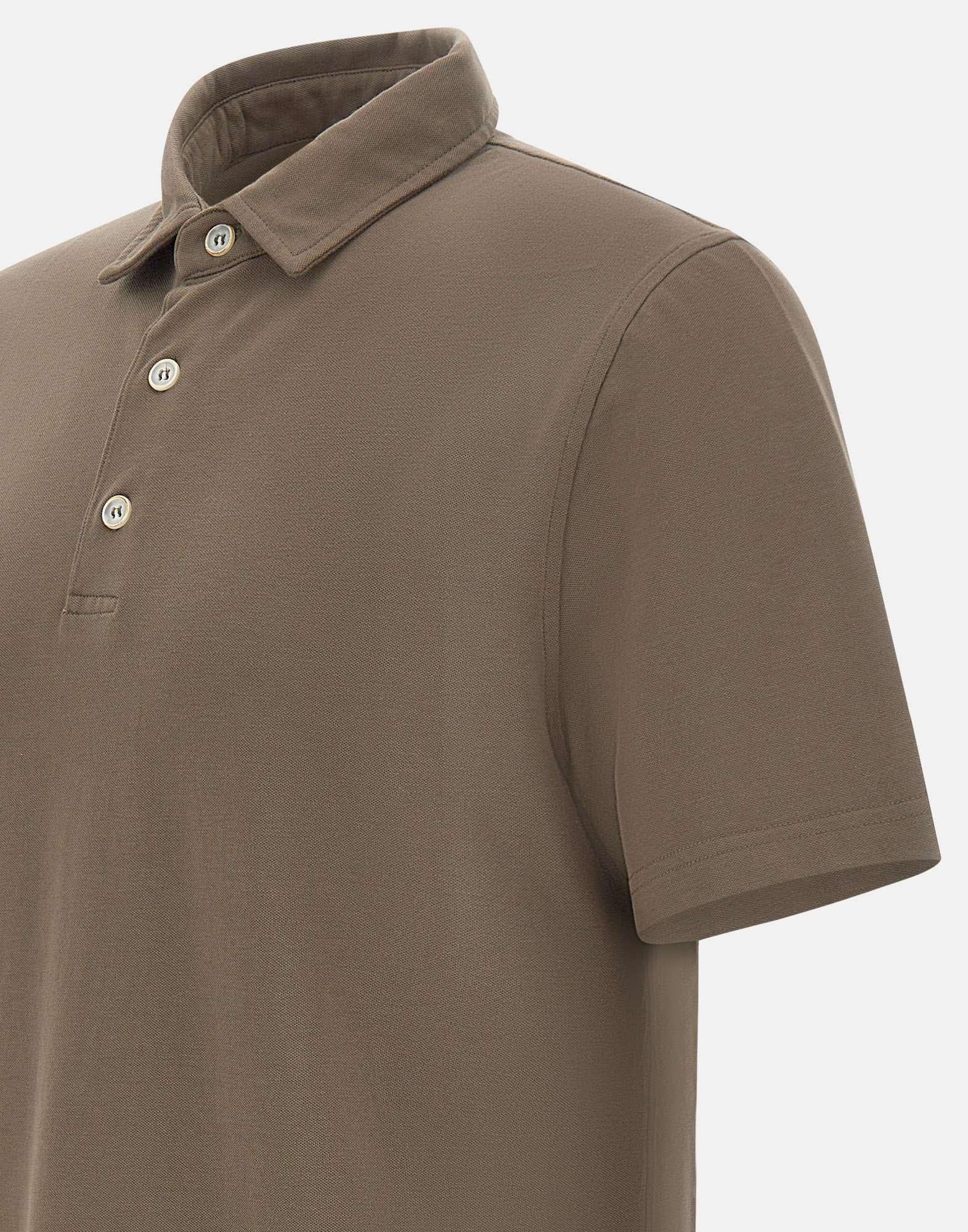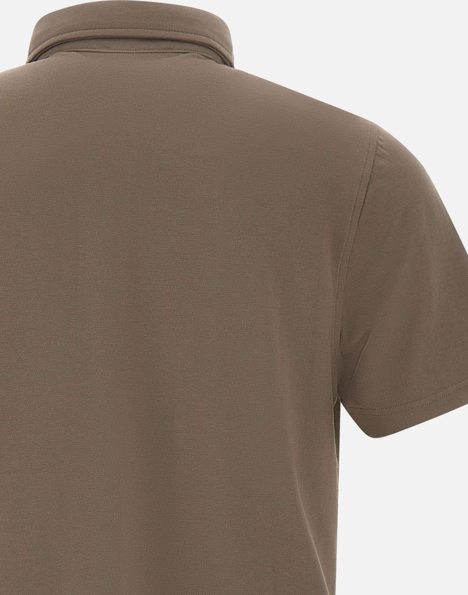Polo uomo Diktat in modal e cotone stretch, color fango, maniche corte, colletto classico chiuso da bottoni, mini spacchetti laterali al fondo, regular fit