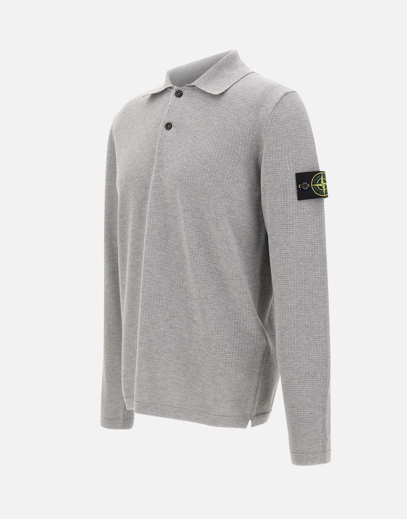 Polo uomo Stone Island a maniche lunghe in morbido cotone biologico a punto micro, color grigio perla melange, pensata per un look essenziale e contemporaneo. Il modello presenta chiusura a due bottoni e fasce in maglia intorno al giromanica, arricchite da cuciture in rilievo che valorizzano la costruzione. Polsini e fondo capo a costine definiscono la linea, mentre il badge Stone Island applicato sulla manica sinistra firma il capo con un dettaglio iconico. Finezza 14 e vestibilità loose, ideale per layering di stagione.