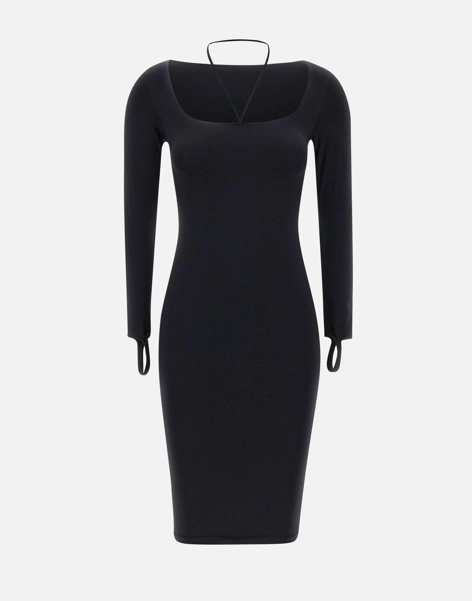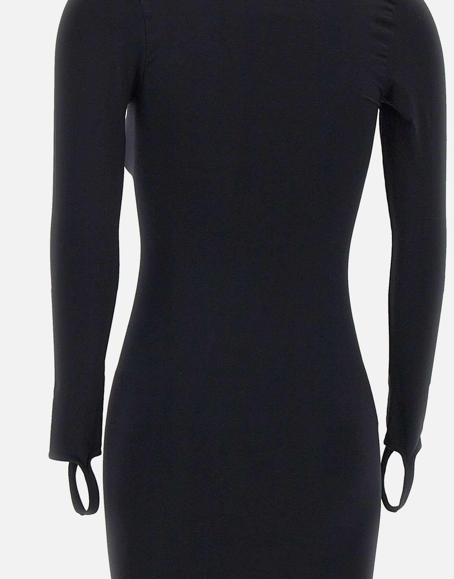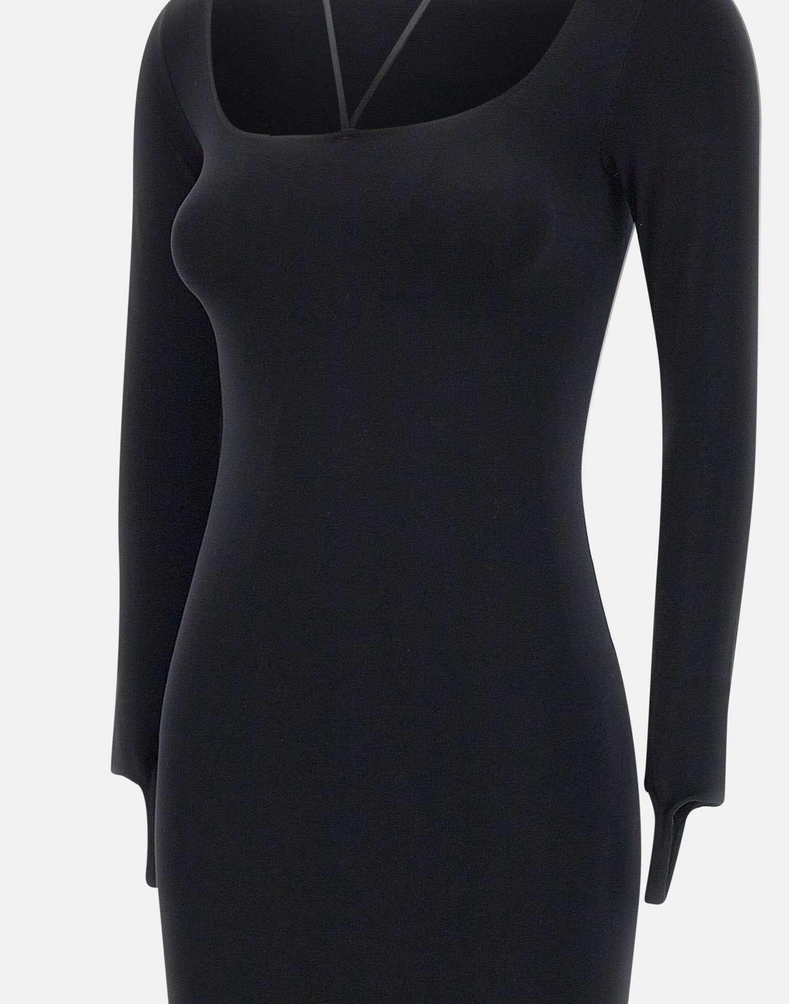 “Sculpting jersey midi dress” Andreadamo, nero, in jersey stretch, maniche lunghe, scollo quadrato, super slim, made in Italy