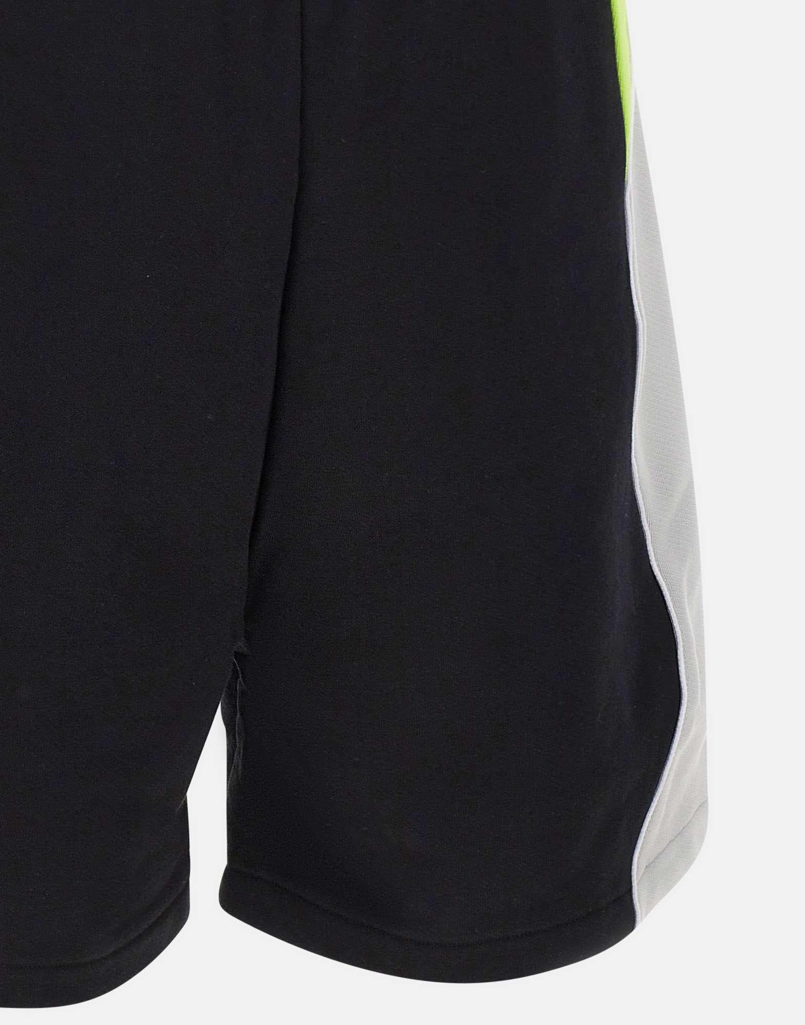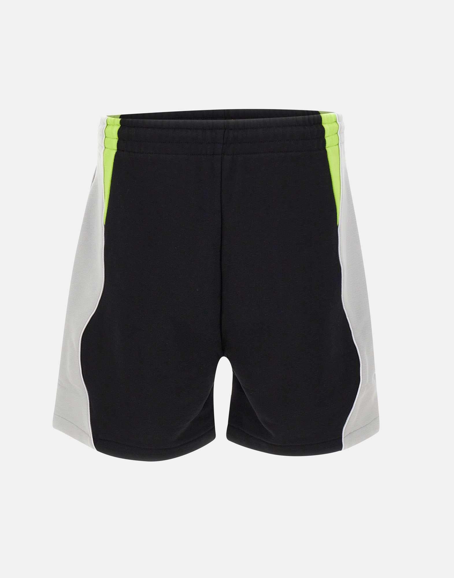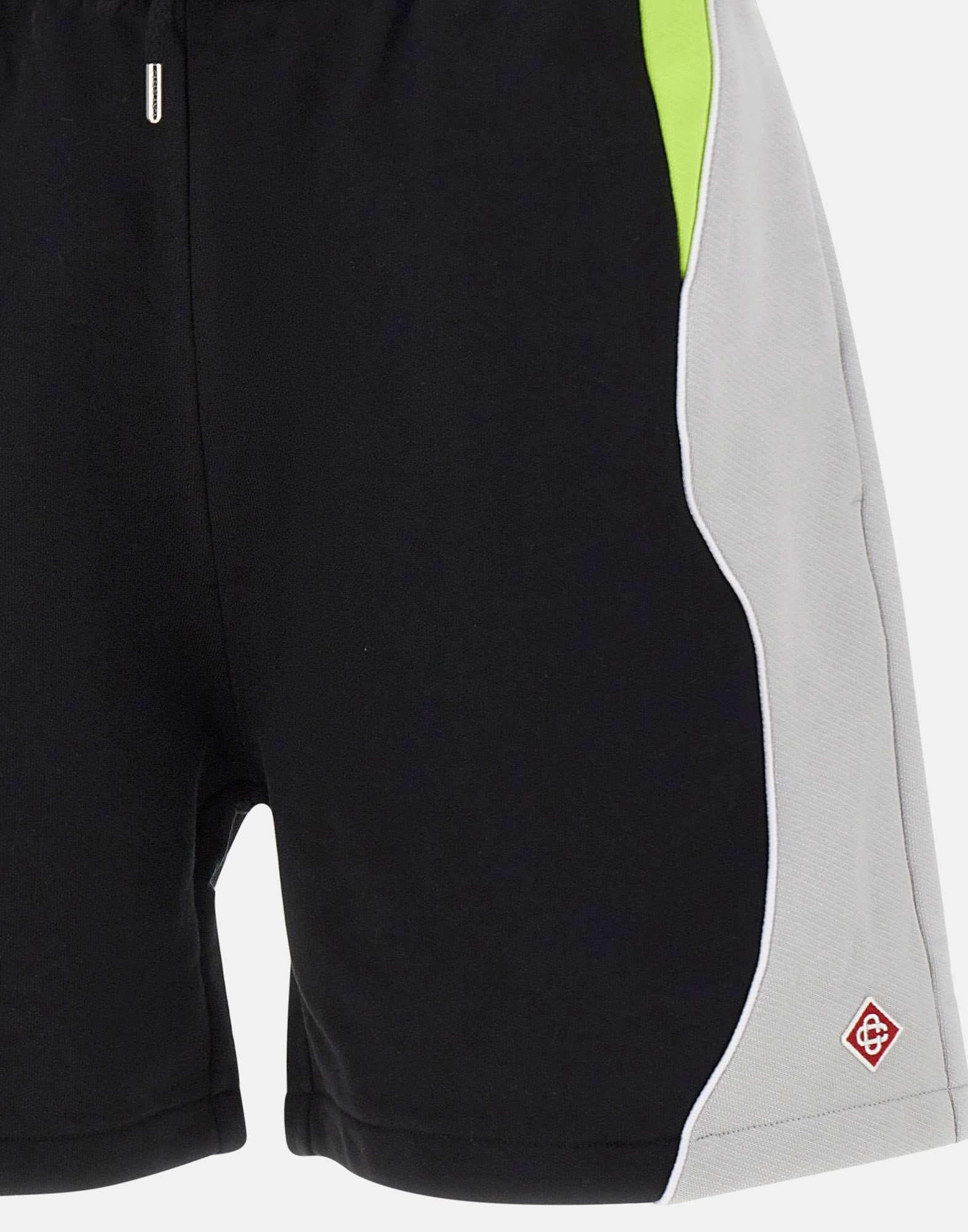 Shorts uomo Casablanca realizzati in cotone biologico color nero, caratterizzati da un motivo color block con inserti grigi e verde lime per un look sportivo e contemporaneo dal gusto luxury. Questo modello unisce linee pulite e dettagli distintivi, ideale per outfit casual ricercati. La vita elasticizzata con coulisse garantisce comfort e regolazione pratica, mentre le tasche laterali inserite nelle cuciture mantengono una silhouette essenziale. Sul fondo della gamba sinistra spicca la patch logo a forma di diamante, simbolo iconico della maison. La vestibilità rilassata completa questi shorts, perfetti per il tempo libero e per uno stile disinvolto ma curato.