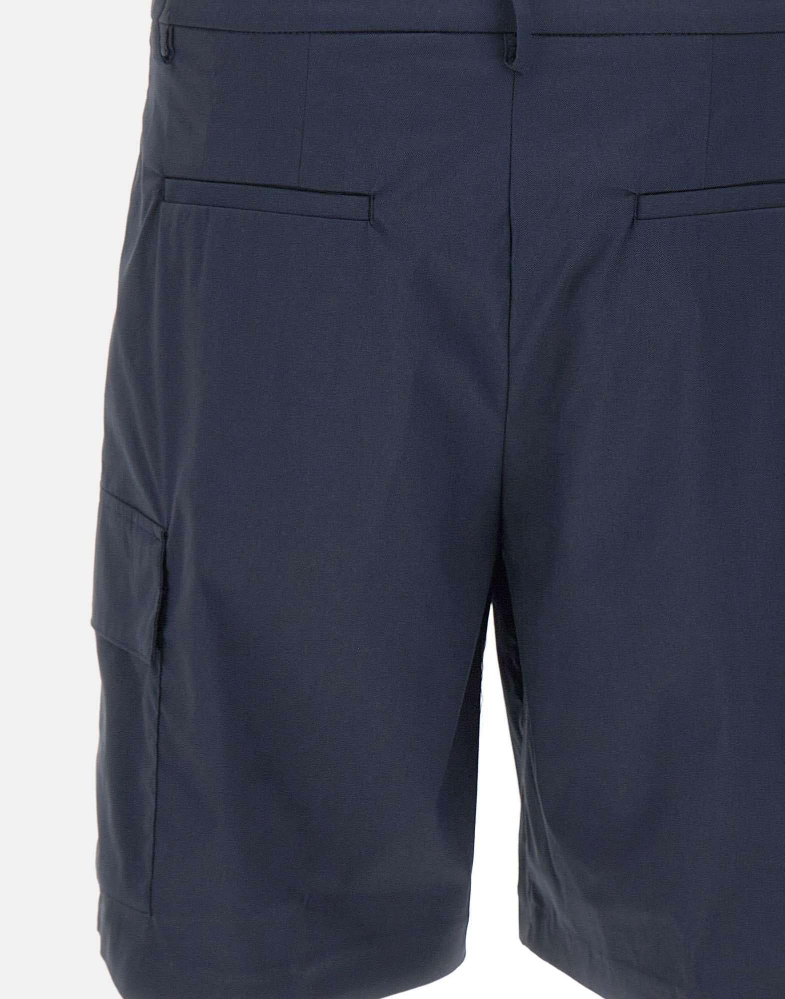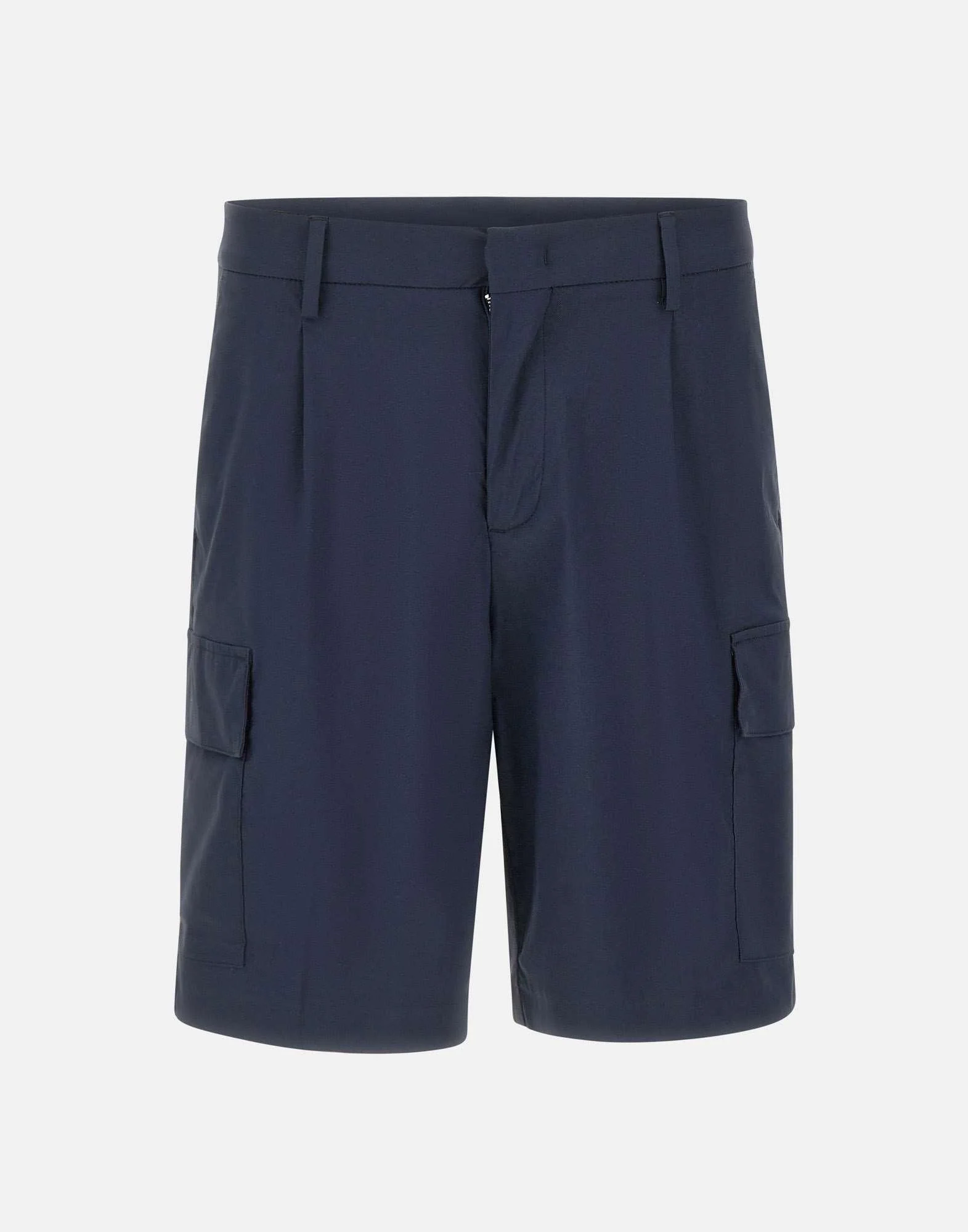Shorts uomo K-Way “Serje Twill Tech” realizzati in gabardine tecnico elasticizzato color blu scuro, con design cargo e vestibilità regolare. Questi bermuda uniscono comfort e funzionalità per la stagione calda, con taglio chino a gamba dritta, pince frontali e chiusura con zip e gancio a scomparsa per una linea pulita. Le tasche laterali e le tasche applicate sui fianchi con patta e bottoni automatici enfatizzano lo stile utility, mentre sul retro le tasche a filetto sono personalizzate dal K-Way tape multicolor, dettaglio distintivo del brand. Made in Italy.