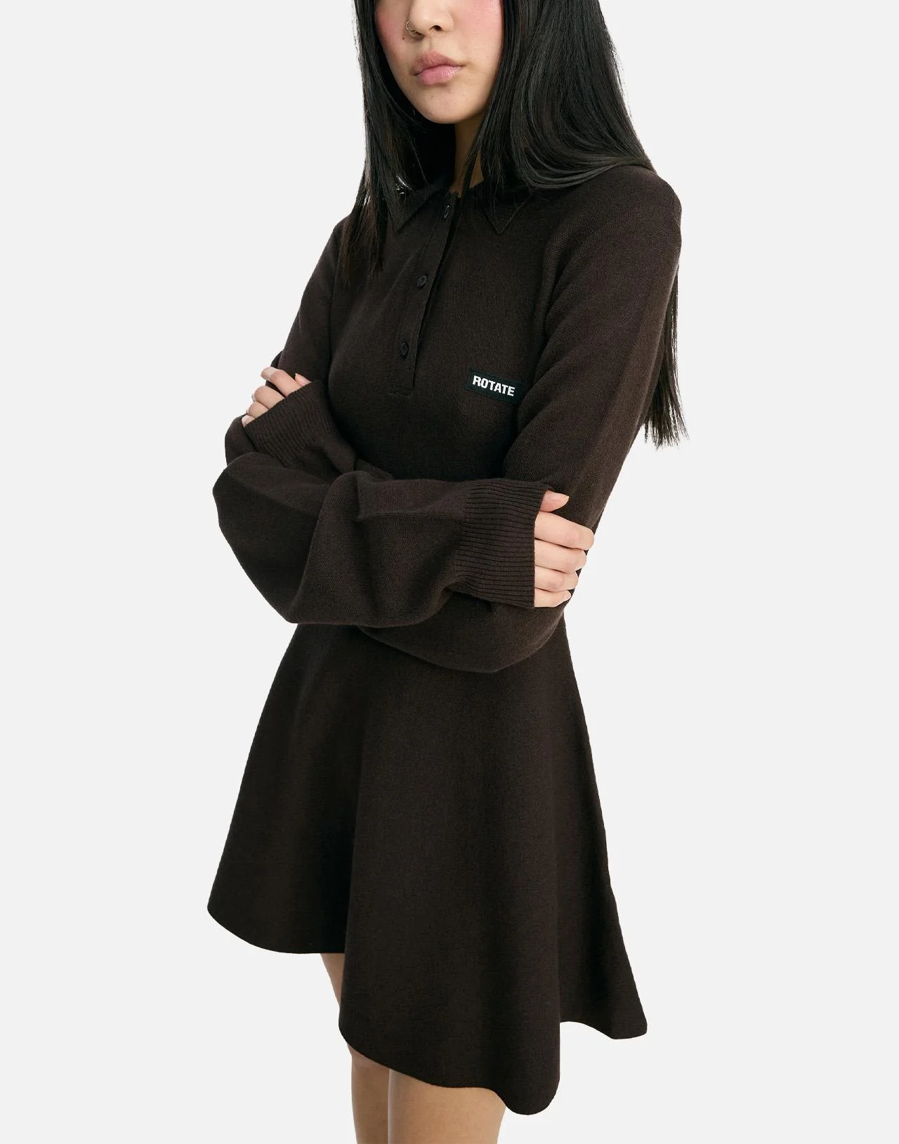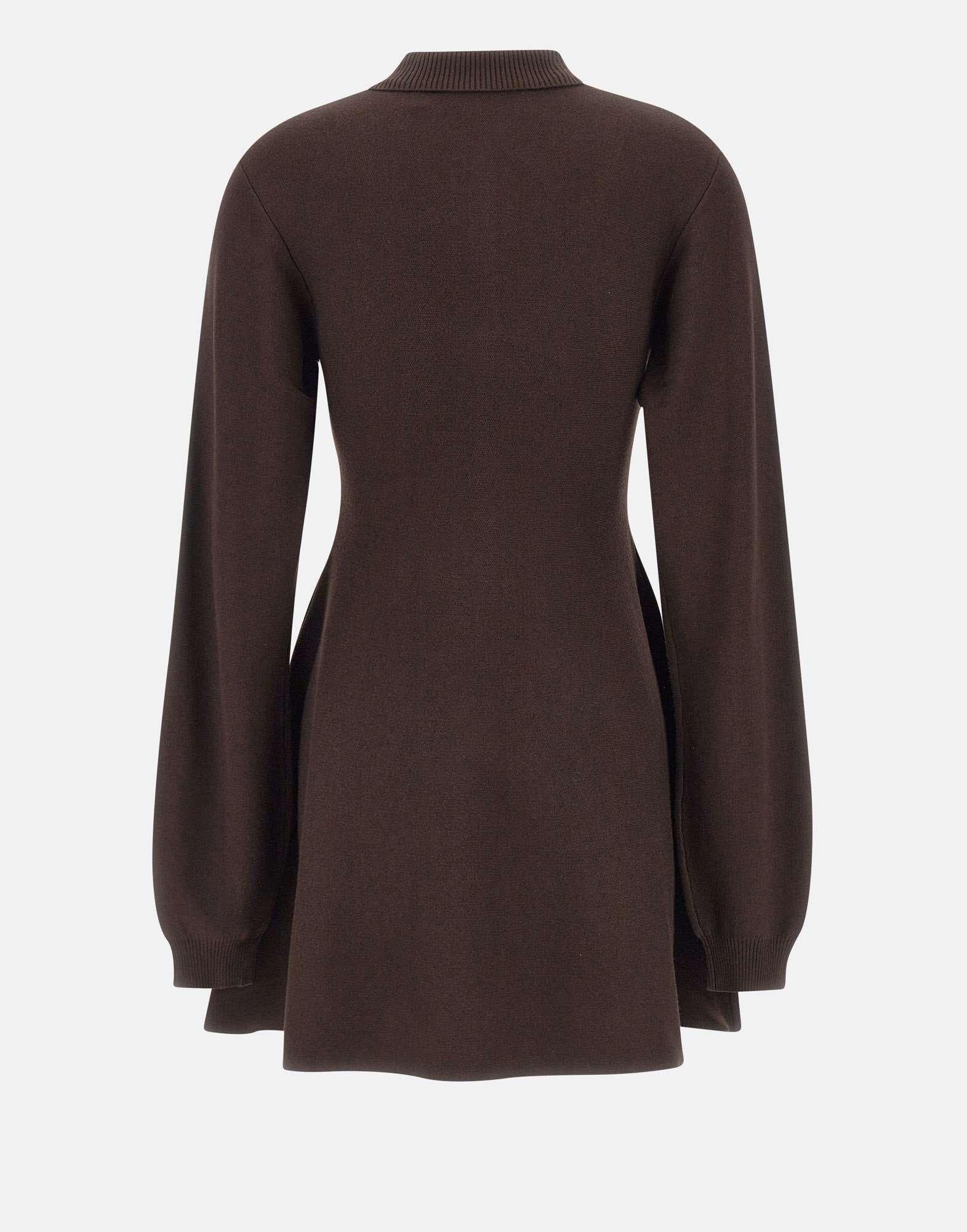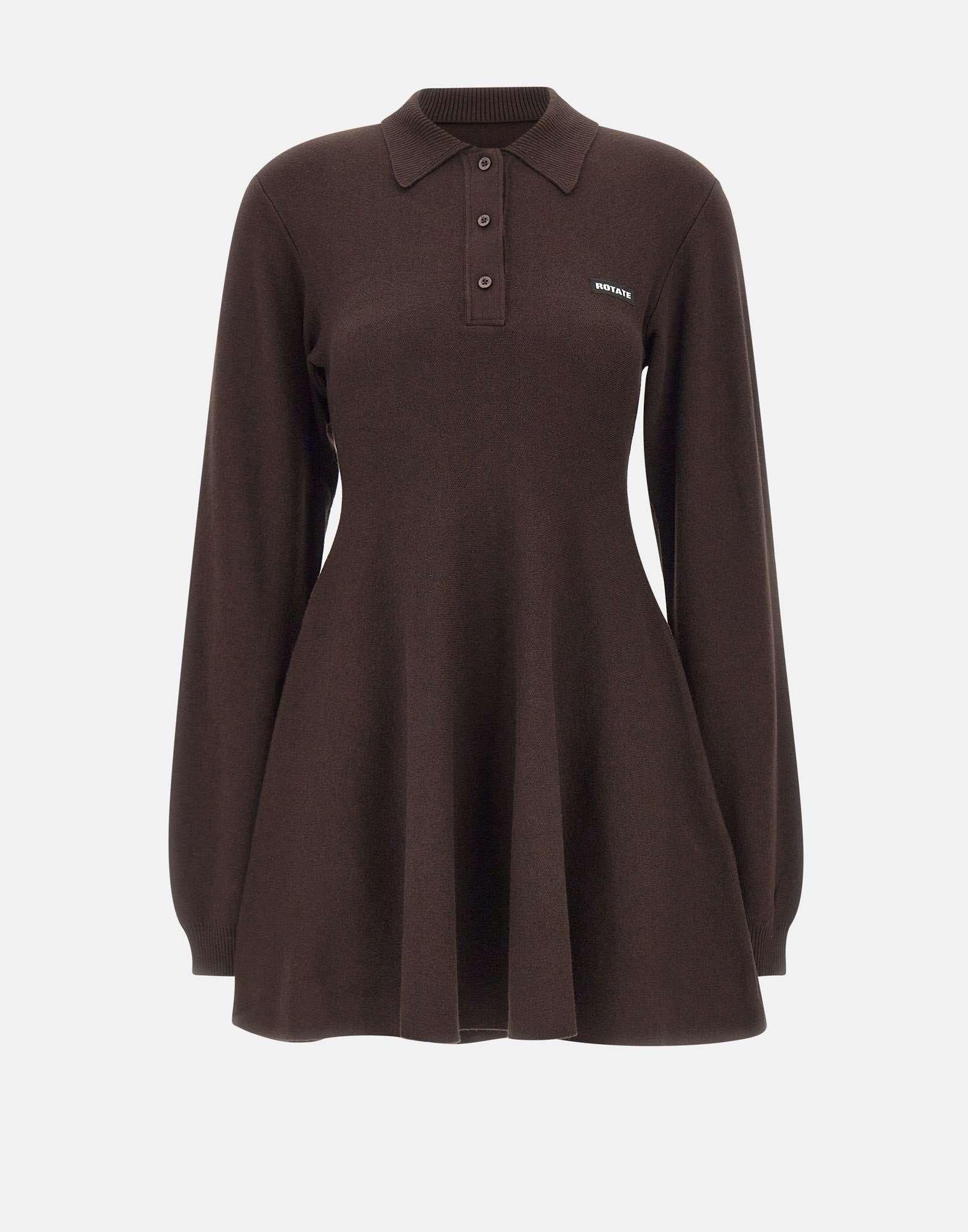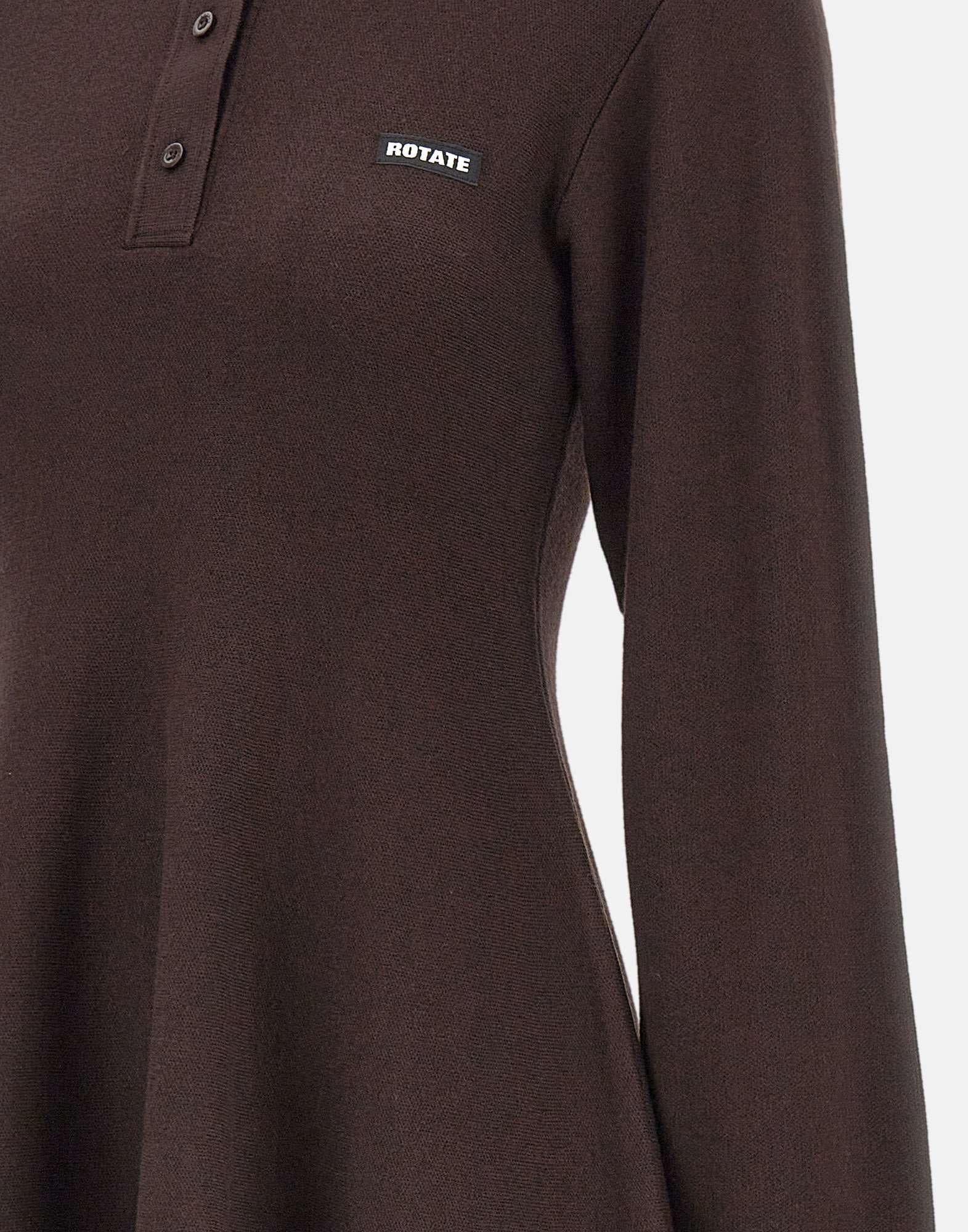 Abito donna Rotate Birger Christensen “Slinky Knit Polo Dress” in maglia color cacao di misto lana e modal, dal design aderente e raffinato. Presenta maniche lunghe, colletto polo con abbottonatura frontale e orlo leggermente svasato che valorizza la silhouette. Il logo ROTATE ricamato sul petto aggiunge un tocco distintivo. Parte della Holiday Collection, unisce comfort, eleganza e stile contemporaneo.