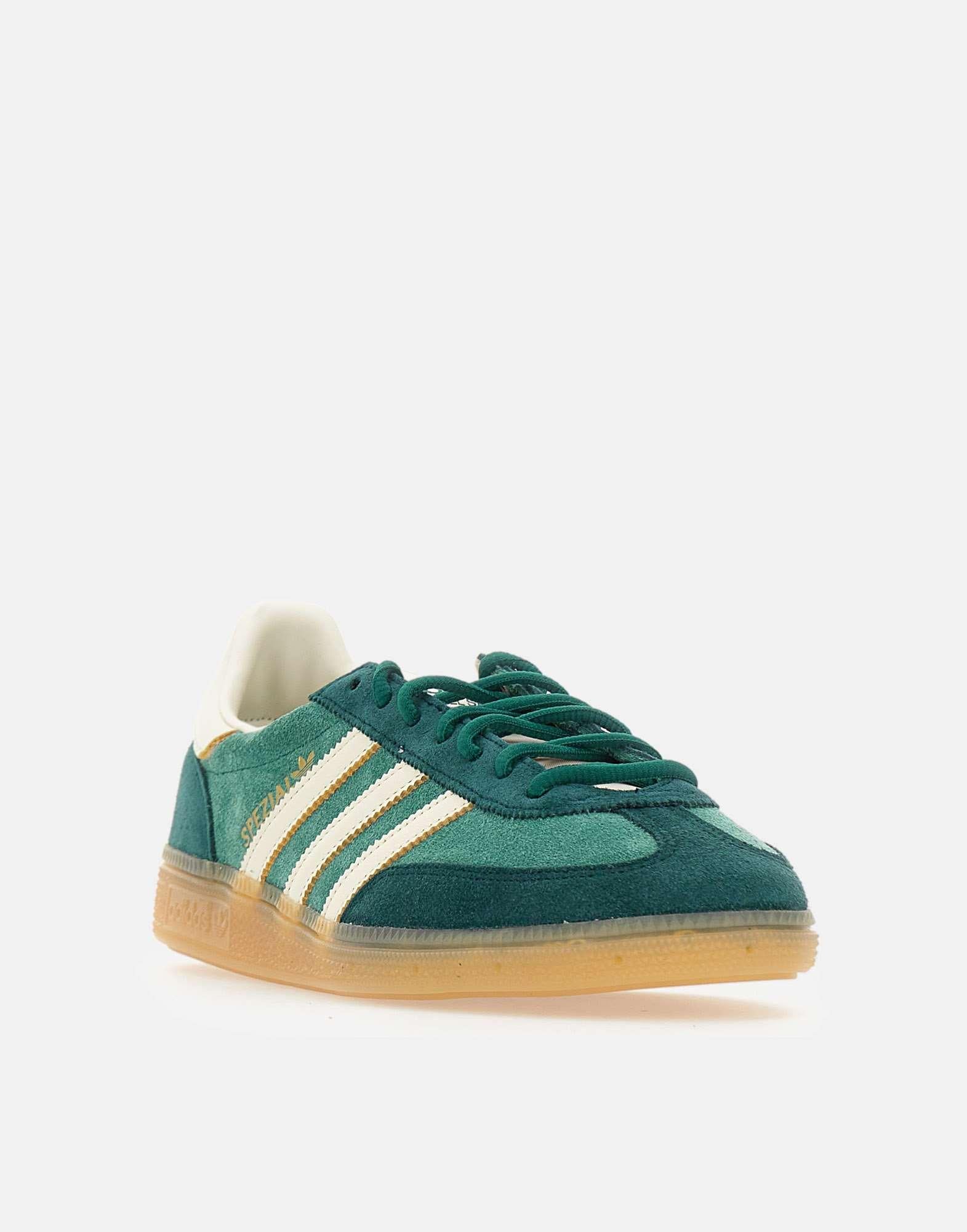 Sneakers uomo Adidas “Handball Spezial” con tomaia in pelle scamosciata colro verde, pensate per un look contemporaneo dal gusto retro. Il modello presenta lacci tubolari coordinati, strisce laterali e talloncino a contrasto color bianco, con dettagli cuciti a mano sulle 3 strisce che aggiungono un tocco raffinato. La linguetta in tessuto logata e il logo SPEZIAL stampato sul lato esterno completano il design. La suola in gomma color ambra alta 3 cm offre trazione resistente, mentre la fodera in tessuto assicura praticità e comfort quotidiano.