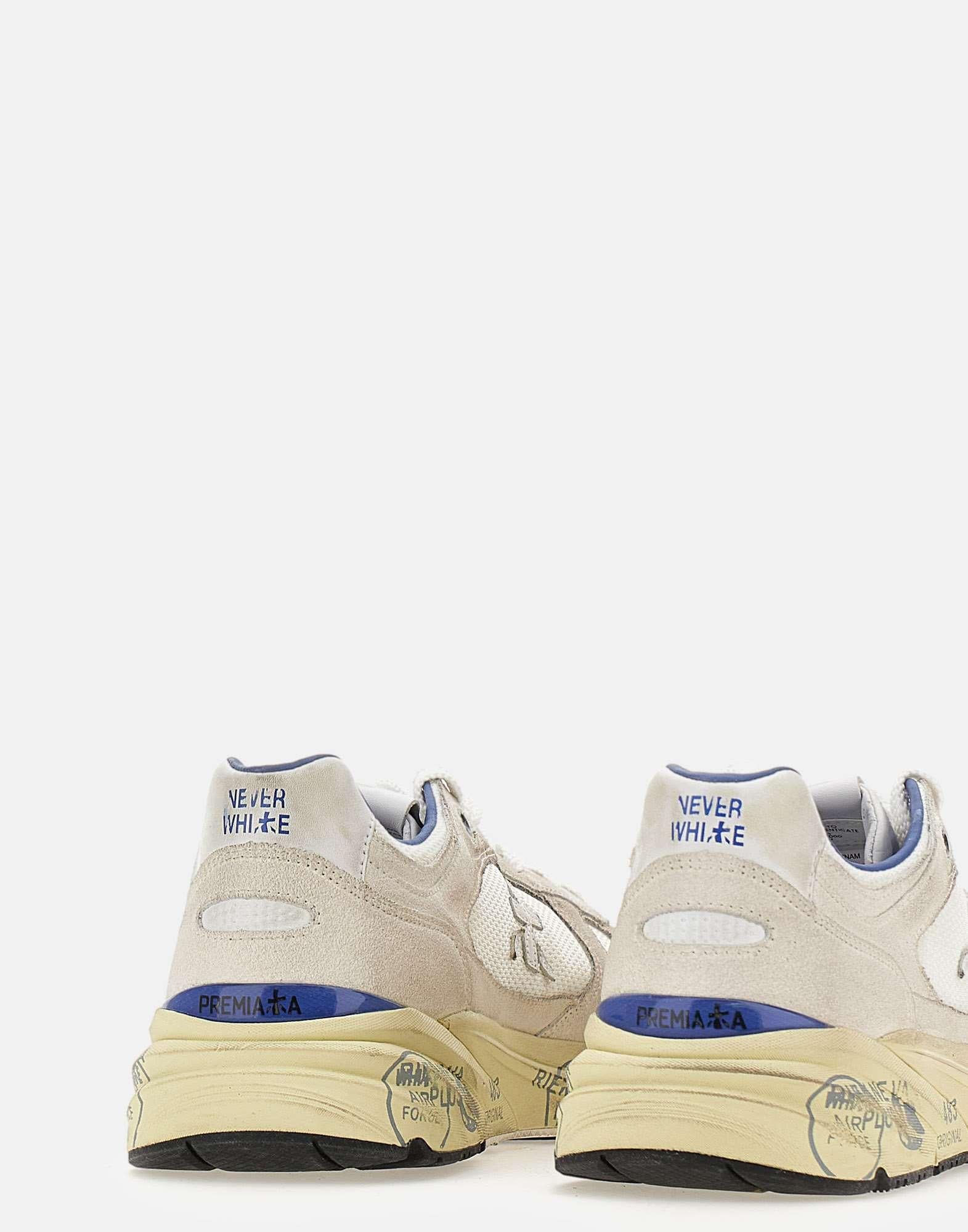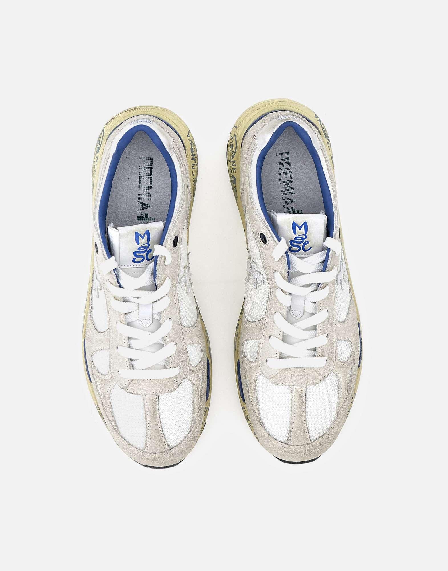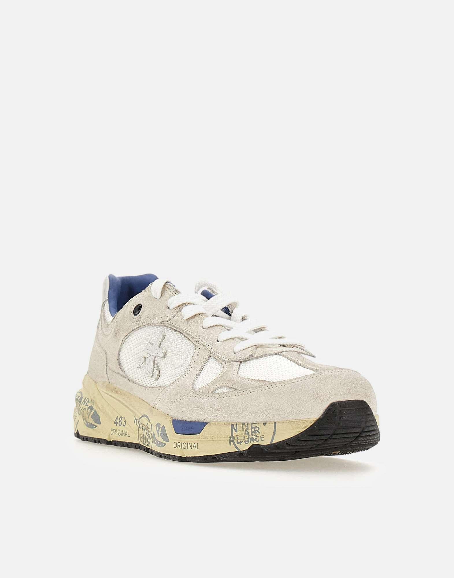 Sneakers uomo Premiata “Mase8019” ispirate al mood nineties, combinano una silhouette moderna con materiali pregiati e dettagli a contrasto per uno stile casual contemporaneo. Realizzate in nylon bianco e camoscio nei toni del color ghiaccio e blu, presentano talloncino e lacci piatti. La fodera in pelle assicura comfort, mentre la suola in gomma con serigrafia Premiata alta 4 cm completa il modello con un segno distintivo del brand. Fedeli al design Premiata, mostrano il logo sui laterali e la scritta MASE sull’etichetta della linguetta, con trattamenti e dettagli vivaci che ne evidenziano l’identità. Calzata regolare.