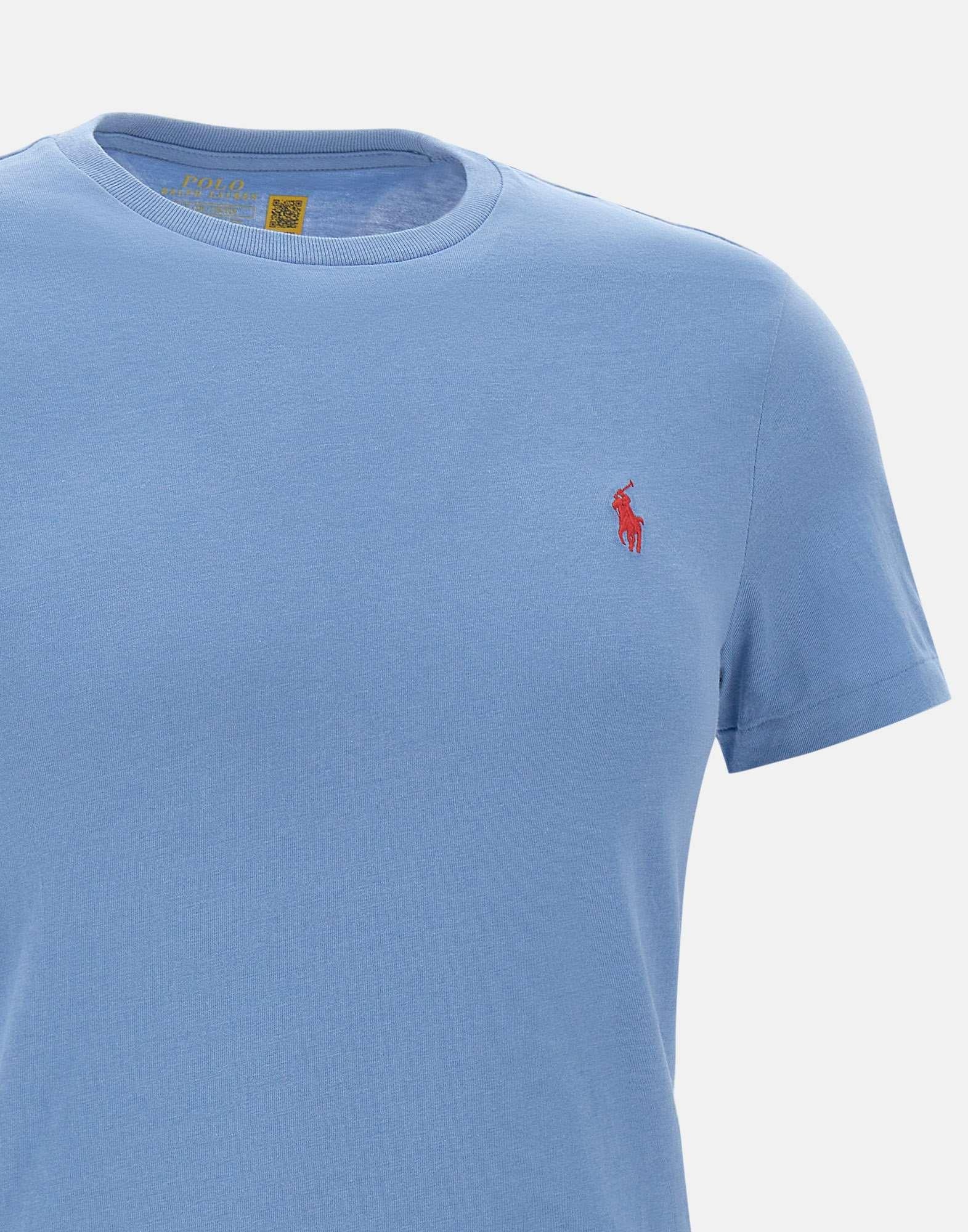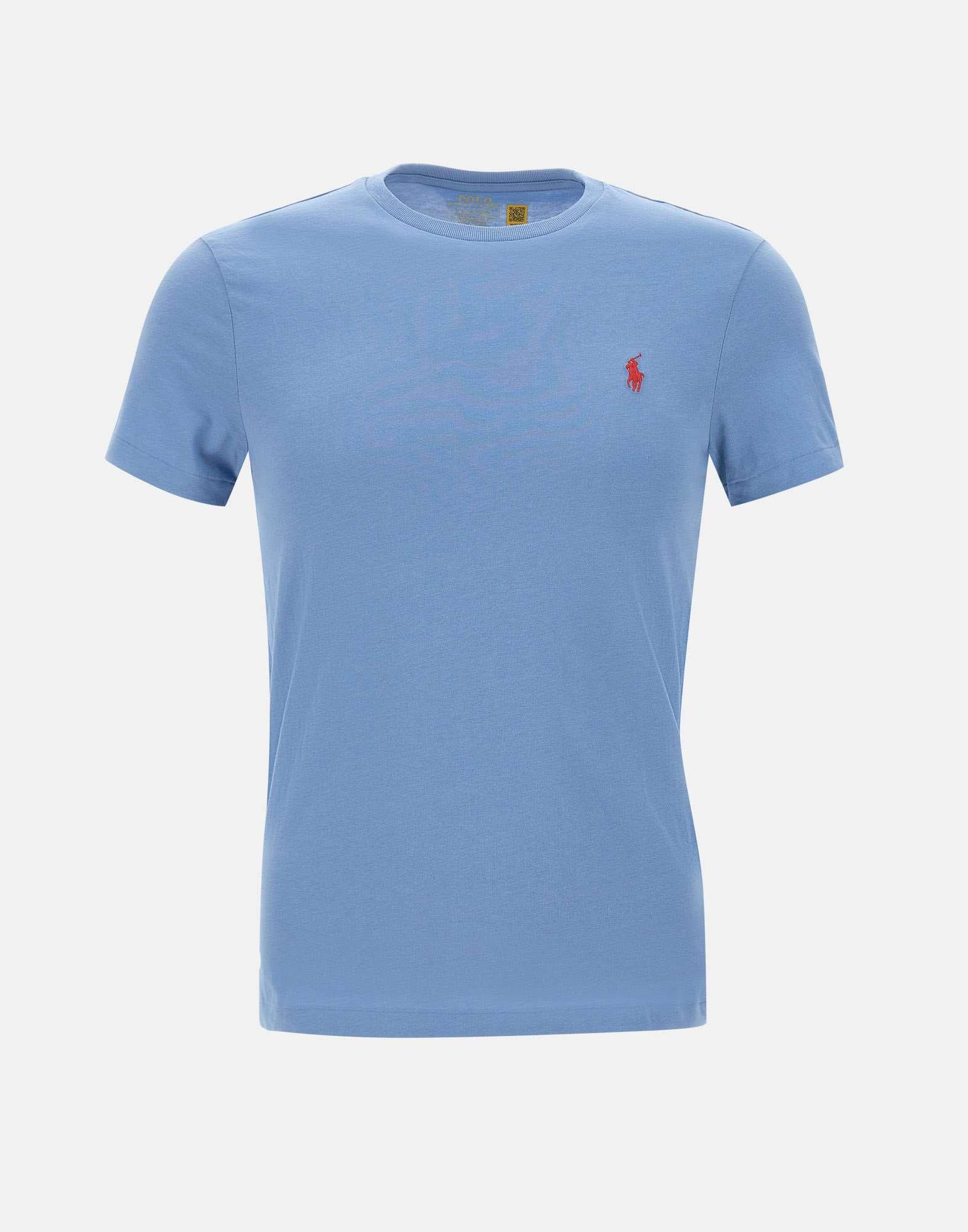 T-shirt uomo Polo Ralph Lauren “Classics” in cotone, blu avio, maniche corte, girocollo a costine, logo iconico a ricamo sul petto a contrasto di colore, custom slim fit