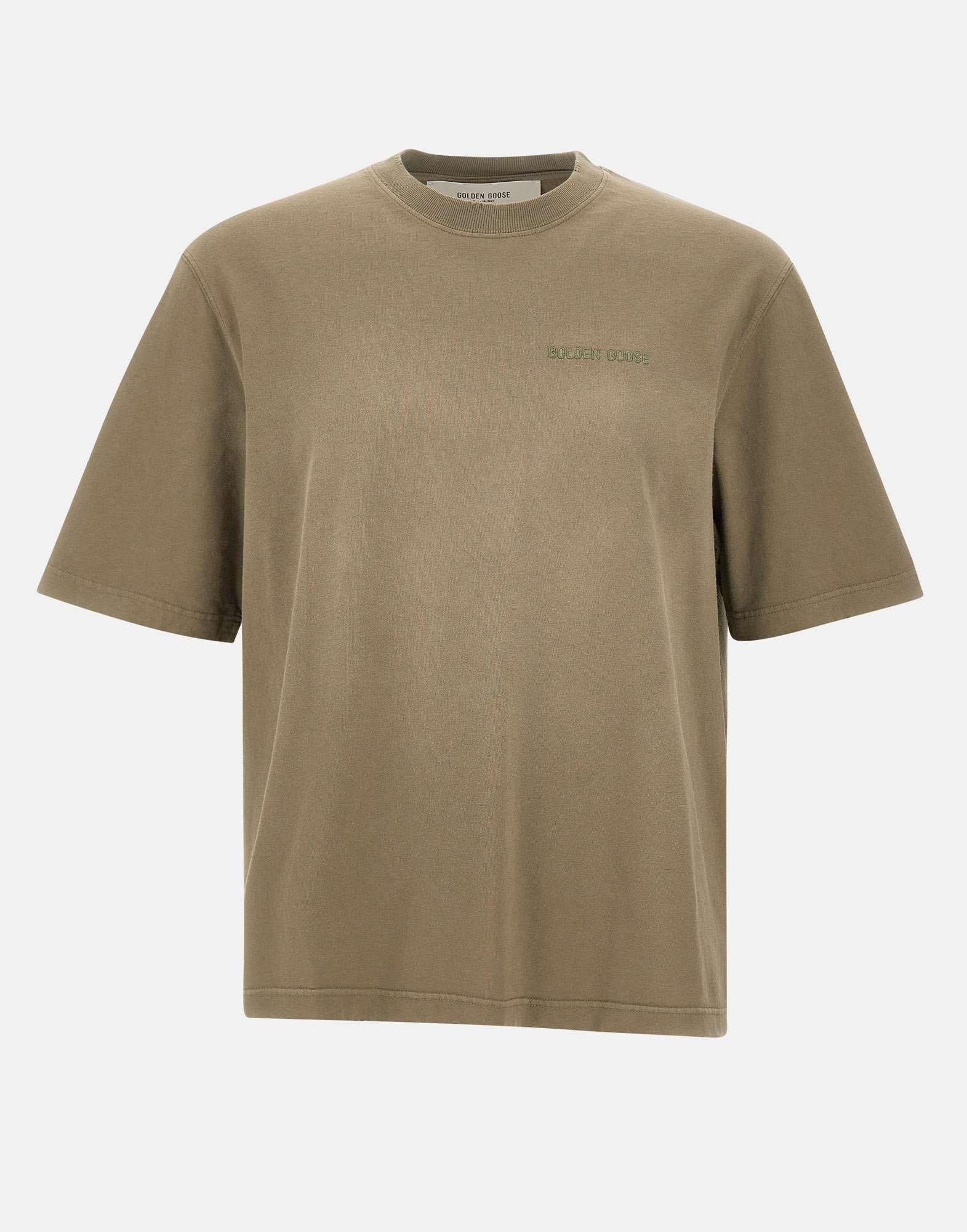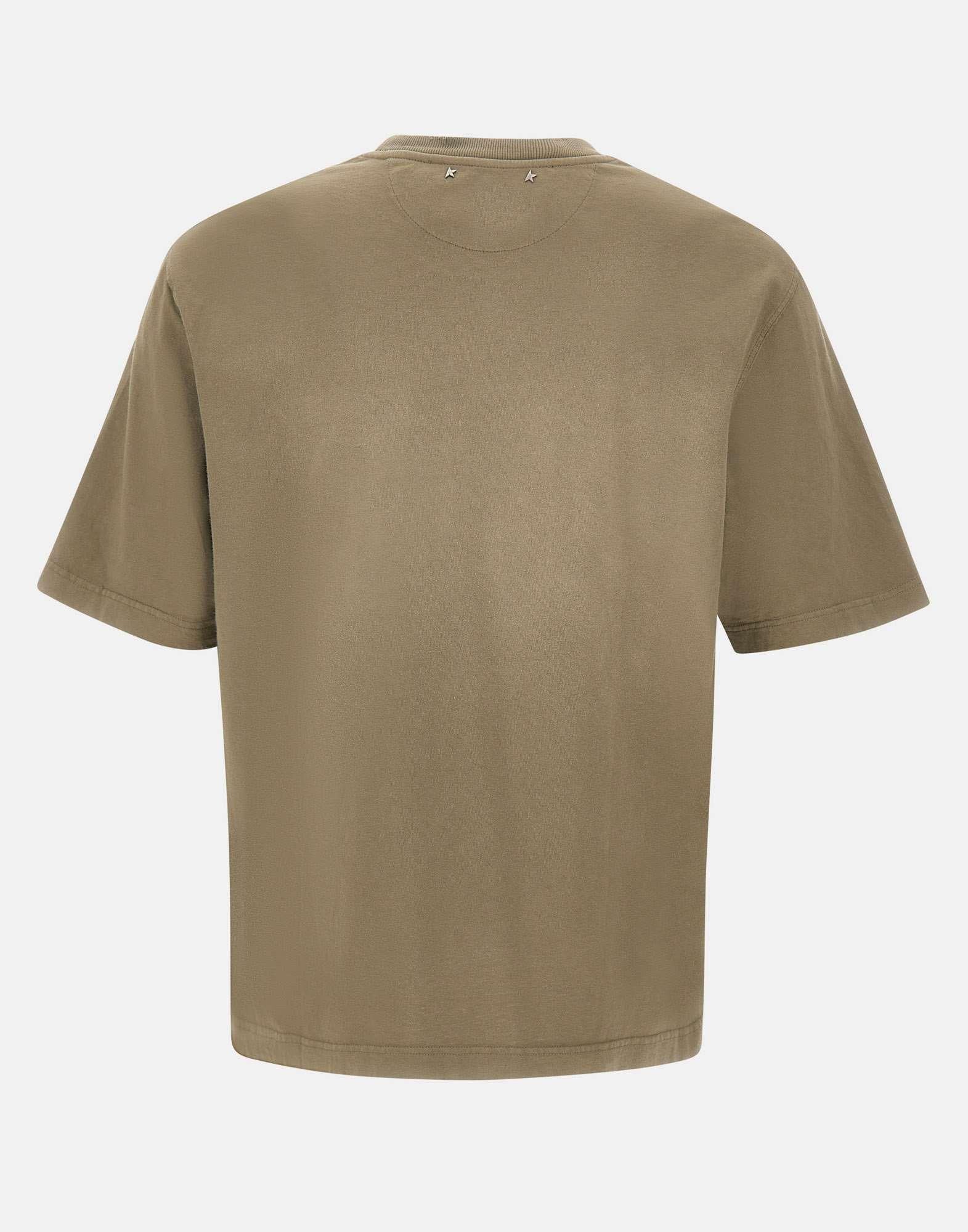 T-shirt Golden Goose della Collezione Holiday, realizzata in jersey di cotone color verde militare. Il modello presenta girocollo, maniche corte e logo ricamato sul davanti. A completare lo stile, i dettagli dall’effetto distressed e le iconiche due stelline applicate sul retro, simbolo distintivo del brand. Un capo dal carattere contemporaneo e versatile. Made in Italy.