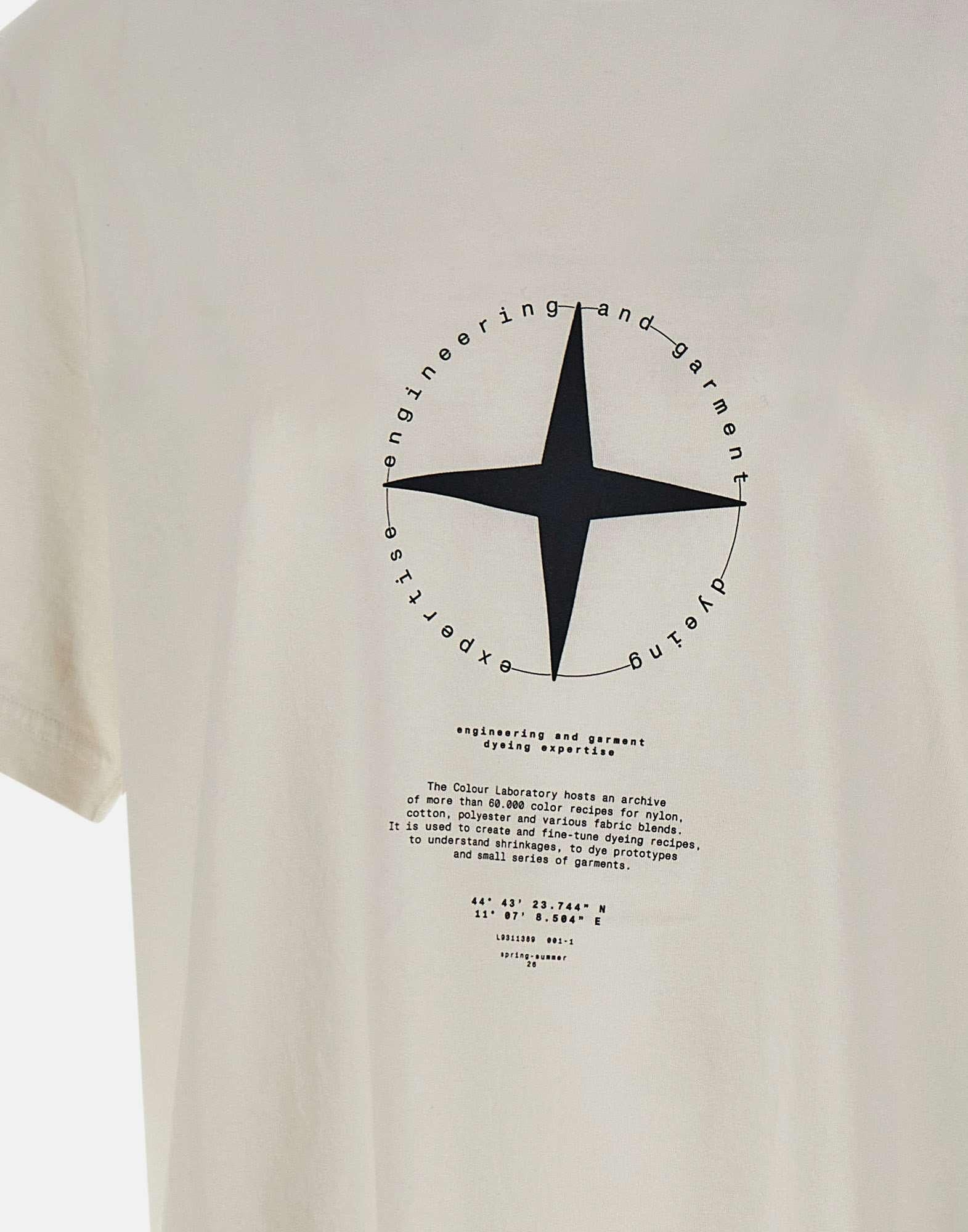 T-shirt uomo Stone Island realizzata in jersey di cotone color bianco, un capo essenziale dallo stile contemporaneo e riconoscibile. Il modello presenta maniche corte e girocollo a costine, con stampa Light Compass sul petto che firma il design con un dettaglio grafico distintivo. La lavorazione tinta in capo valorizza la resa del colore e l’aspetto del jersey, mantenendo una mano morbida e confortevole. La vestibilità regular fit rende questa t-shirt in cotone ideale per look casual e layering.