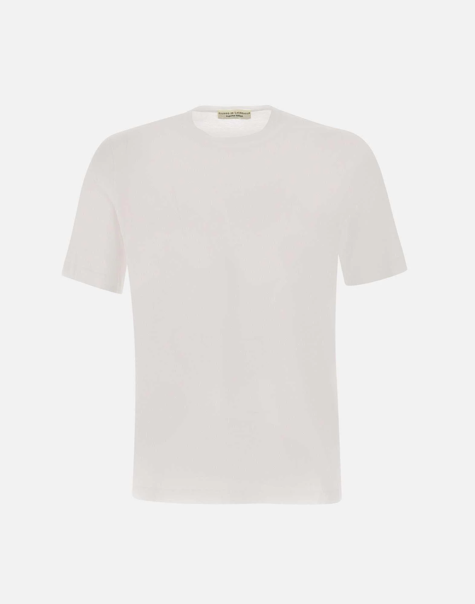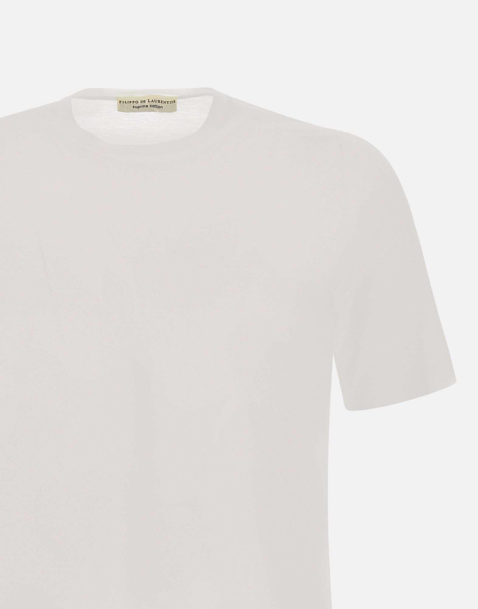 T-shirt uomo Filippo De Laurentiis “Jerlux” in cotone supima, bianca, maniche corte, girocollo, spacchetti laterali sul fondo, regular fit, filato leggero e fresco ideale per la stagione primaverile ed estiva. Made in Italy.