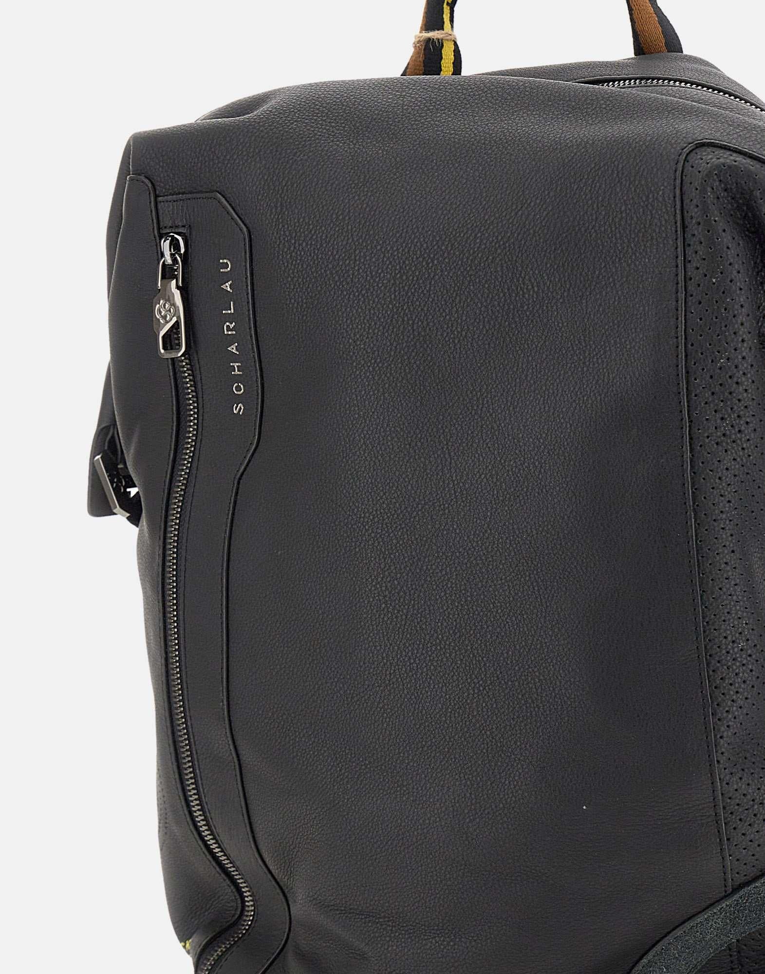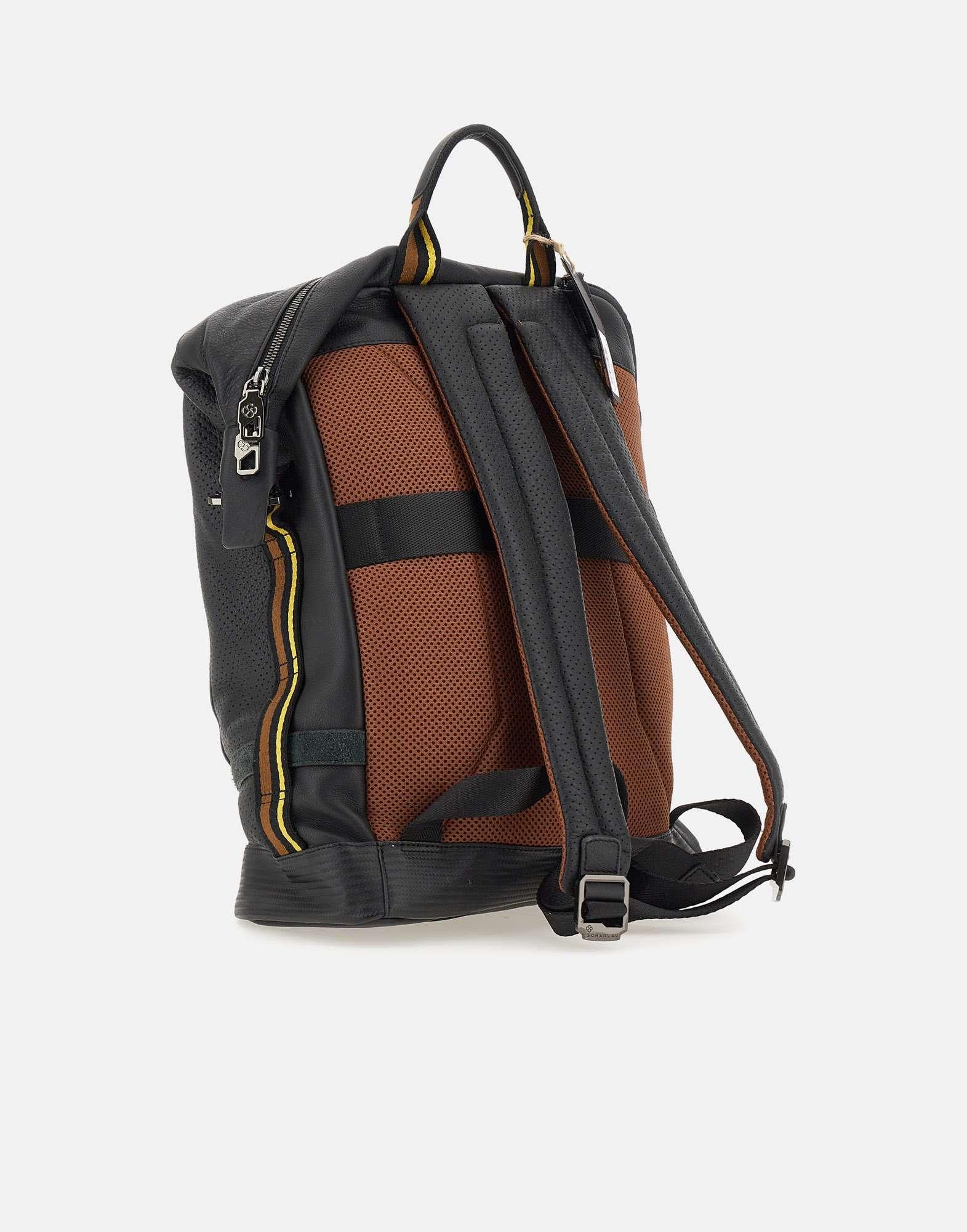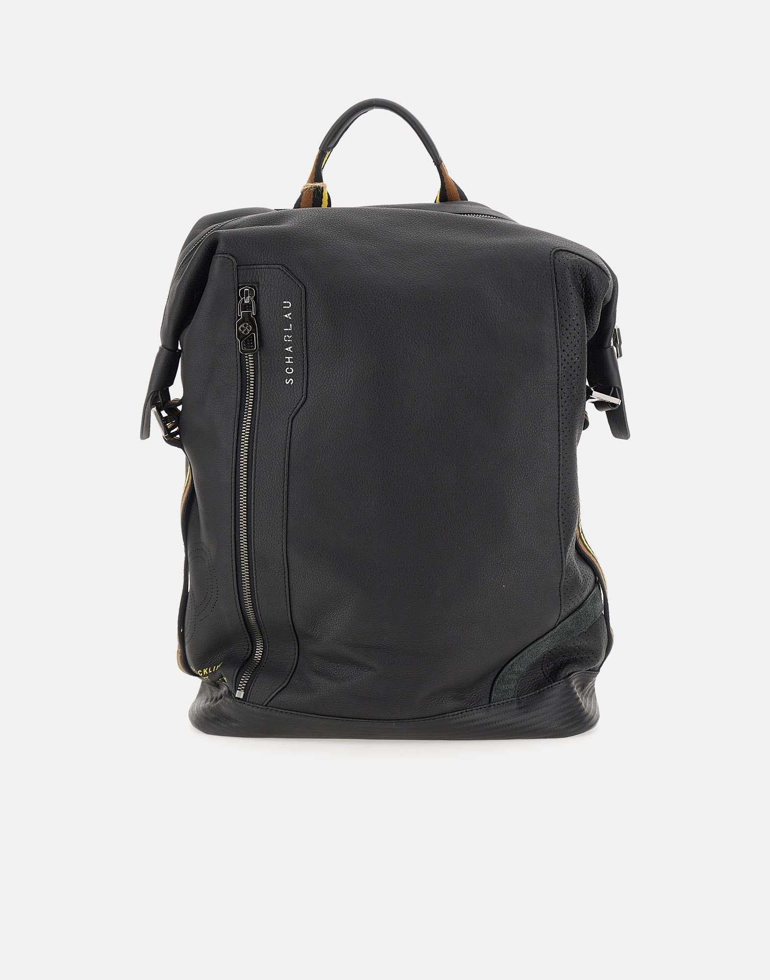 Zaino uomo Scharlau “Blondin”, collezione Slackline, nero con profili a contrasto multicolor, vero e proprio gioiello di pelletteria, realizzato in pelle bovina pieno fiore semi-anilina, con grana fine e consistenza extra morbida, design moderno ed elegante con ispirazione scenario Grand Canyon Usa, scomparto rinforzato per laptop fino a 15,6 “pollici, tasca interna,porta carte, schienale e spallacci imbottiti, tasca frontale esterna con zip, scomparto laterale, tasca per cellulare,sistema di attacco al carrello,maniglie regolabili e imbottite, manico superiore, logo frontale e sul fondo. Misure: lunghezza 31cm, altezza 42cm, profondità 12cm. Peso: 1.17 kg